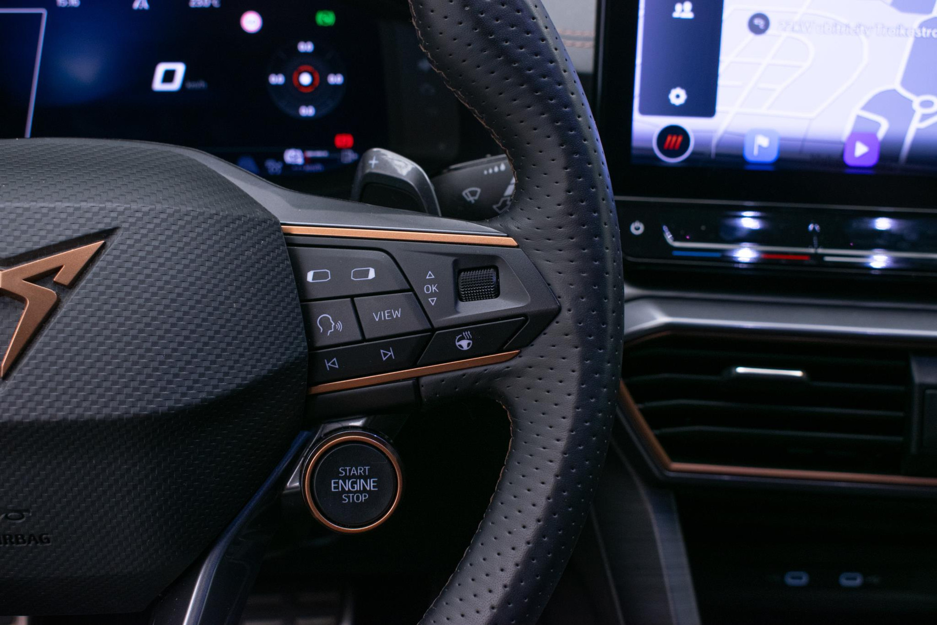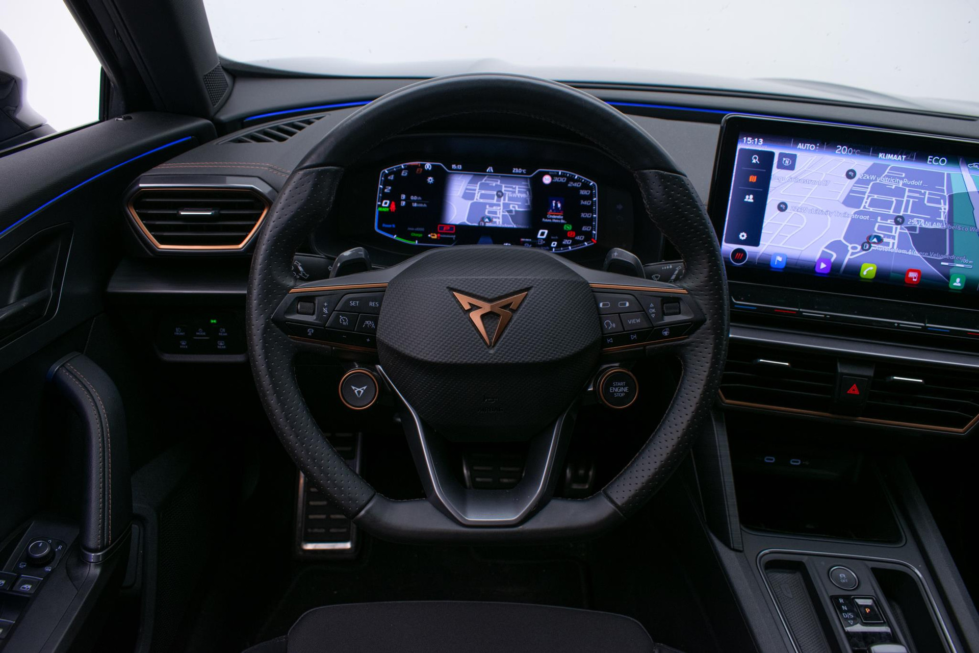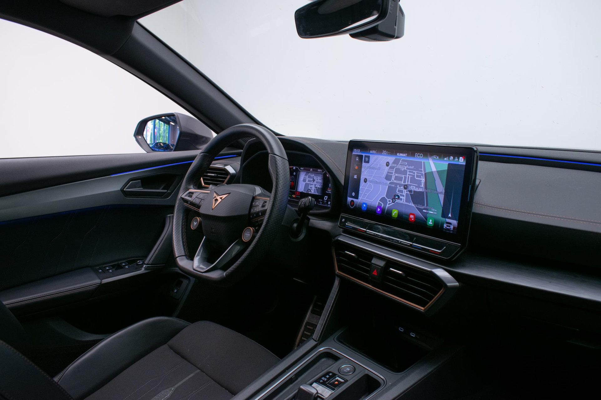 Het digitale dashboard rekent mee, denkt mee en rijdt mee. Alle info overzichtelijk in beeld, overal. Met behulp van de achteruitrijcamera kunt u zo strak inparkeren als u maar wilt! Met adaptive cruise control houdt deze auto automatisch afstand tot uw voorligger. Rijden-stilstaan, rijden-stilstaan. Niks is irritanter en vermoeiender dan filerijden. Daar heeft deze CUPRA Formentor een oplossing voor: de file assistent, die met radarmeting permanent het tempo aanpast op de voorligger. Zelfs als die stopt. Zoals u van zo'n jonge auto mag verwachten, zijn hier ook de geavanceerde remote services aanwezig. Simpelweg met een app op uw smartphone controleert u op afstand de status van de auto en bedient u diverse functies. Met dashboard met spraakbediening, full map navigatiesysteem, achteropkomend verkeer waarschuwing, electronic climate control, draadloos opladen en DAB ontvangst is deze auto helemaal compleet.