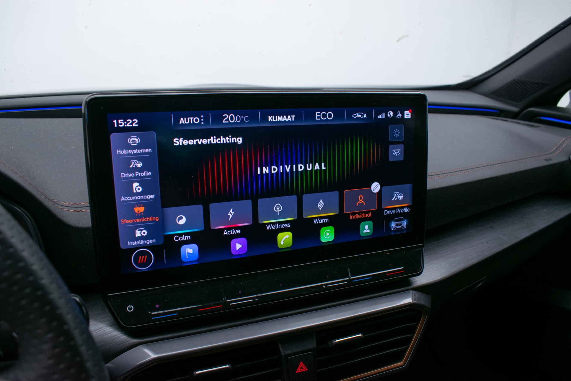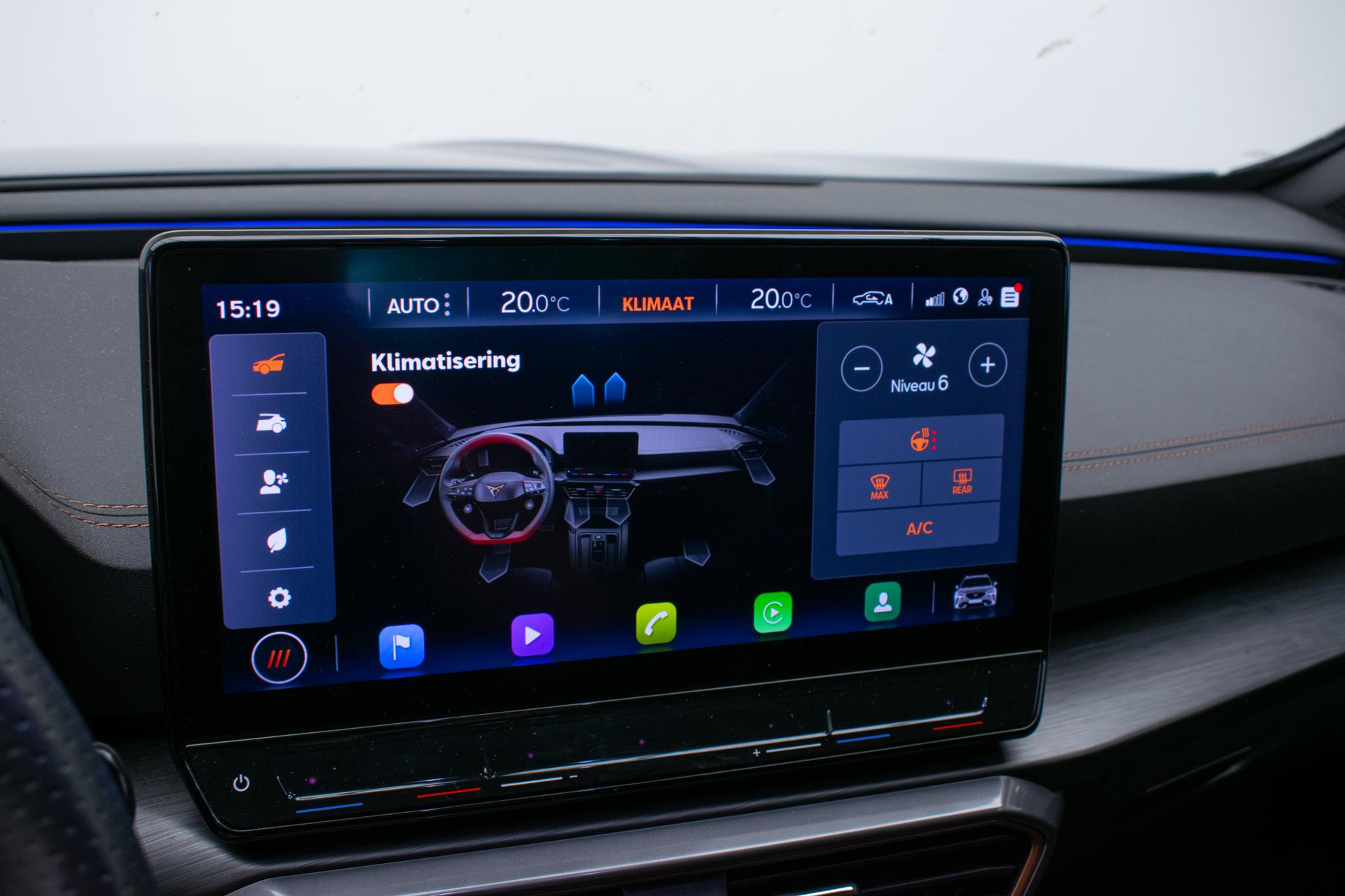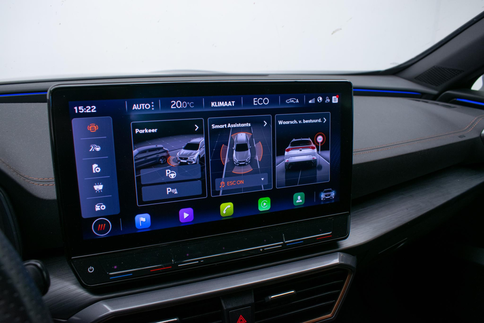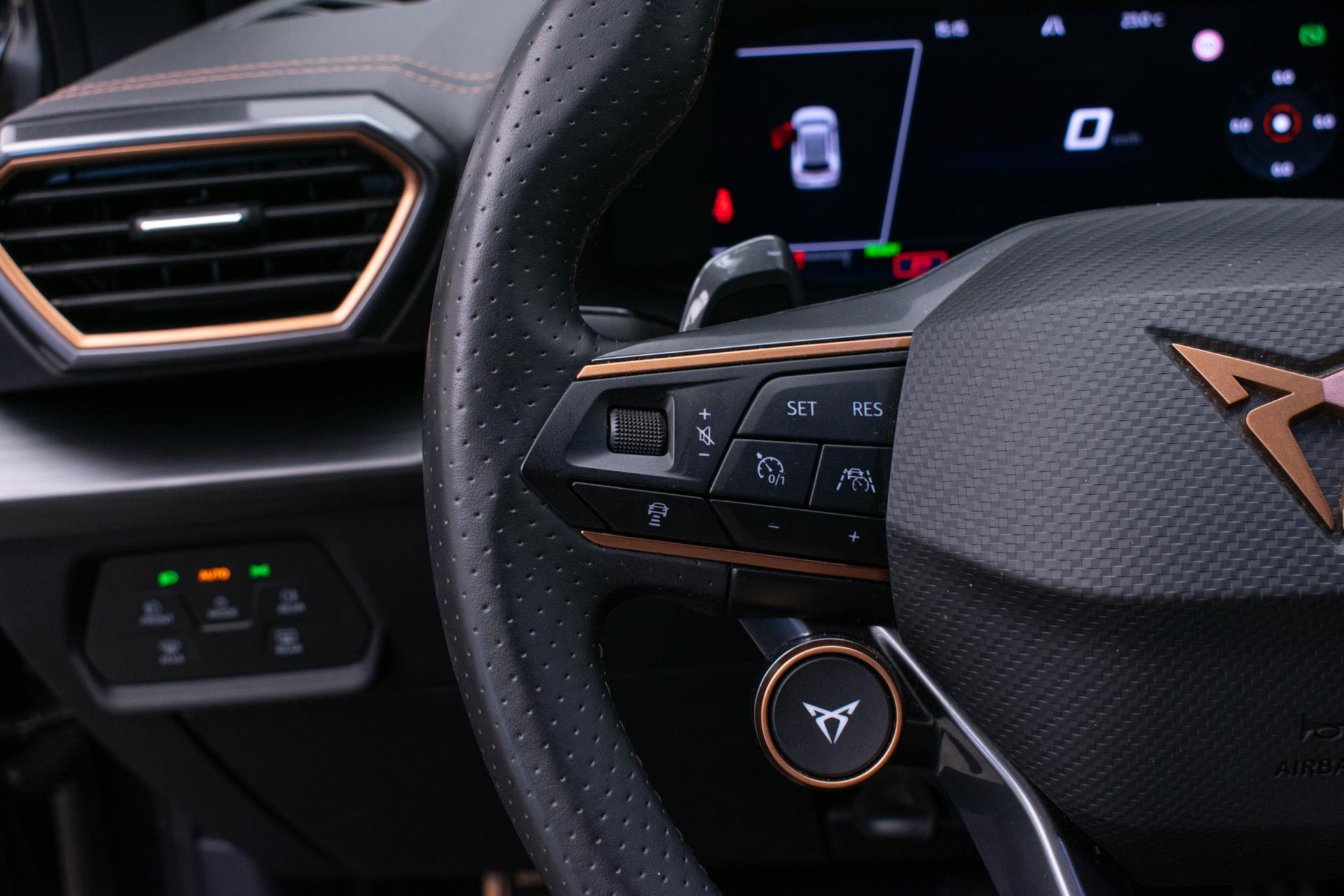Het digitale dashboard rekent mee, denkt mee en rijdt mee. Alle info overzichtelijk in beeld, overal. Met behulp van de achteruitrijcamera kunt u zo strak inparkeren als u maar wilt! Met adaptive cruise control houdt deze auto automatisch afstand tot uw voorligger. Rijden-stilstaan, rijden-stilstaan. Niks is irritanter en vermoeiender dan filerijden. Daar heeft deze CUPRA Formentor een oplossing voor: de file assistent, die met radarmeting permanent het tempo aanpast op de voorligger. Zelfs als die stopt. Zoals u van zo'n jonge auto mag verwachten, zijn hier ook de geavanceerde remote services aanwezig. Simpelweg met een app op uw smartphone controleert u op afstand de status van de auto en bedient u diverse functies. Met dashboard met spraakbediening, full map navigatiesysteem, achteropkomend verkeer waarschuwing, electronic climate control, draadloos opladen en DAB ontvangst is deze auto helemaal compleet.