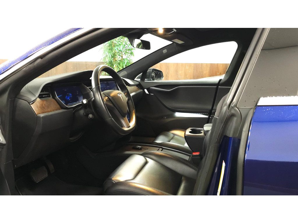 Deze Tesla Model S is innovatie op zijn best. Hij is ontworpen als een unieke combinatie van rijplezier en zorg voor het milieu. De fluisterstille elektromotor zorgt voor pittige rijprestaties zonder uitstoot. Maar wel met fiscaal voordeel! De krachtige motor geeft deze Tesla uitstekende prestaties. Mooi hoe luxe en gemak hier samengaan. Een fraai lederen interieur en een elektrisch bedienbare achterklep. Dankzij de elektrische stoelbediening is het gemakkelijk om de optimale zitpositie te vinden. Ongeacht hoe koud het buiten is, het verwarmbare stuurwiel samen met de verwarmbare voorstoelen en achterbank, zorgt ervoor dat iedereen in de auto zich snel opwarmt. Dankzij de luchtvering hebben alle vier de wielen optimaal contact met de weg. En ondertussen elimineert ze het effect van oneffenheden. Geniet van de lichtinval en het uitzicht van het grote glazen panoramadak. Natuurlijk behoren 19 inch lichtmetalen velgen, LED koplampen, elektrisch inklapbare buitenspiegels, in delen neerklapbare achterbank, LED-achterlichten en verwarmde ruitensproeiers ook tot de uitrusting van deze complete auto.
