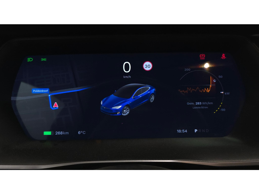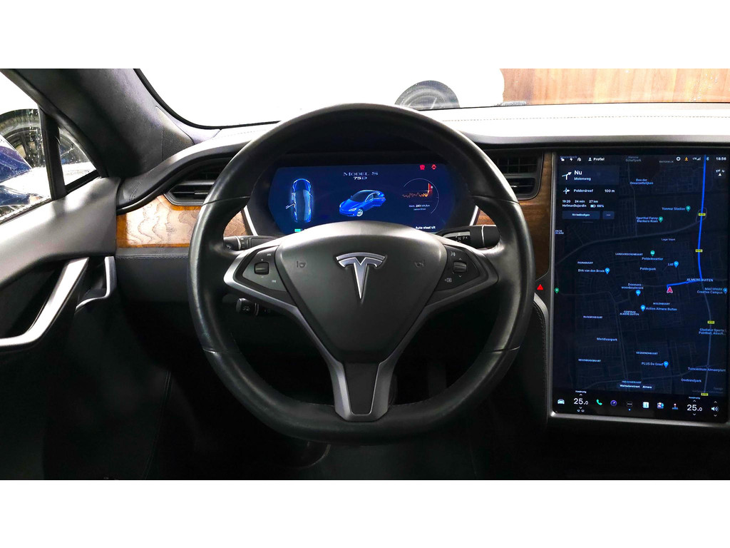 Geen nekkramp of spiegelwerk meer bij het achteruitrijden: de achteruitrijcamera kijkt en ziet alles! Adaptive cruise control is veilig en comfortabel. De snelheidsregelaar houdt automatisch afstand tot het voertuig dat voor u rijdt. Het high performance audiosysteem is volledig afgestemd op de akoestiek van de auto; genieten dus! De auto is ook uitgevoerd met electronic climate control. Het luxeniveau in deze Tesla is niet alleen gericht op comfort, maar ook op uw veiligheid. Tal van sensoren helpen u om de omgeving in de gaten te houden. De automatisch inschakelbare verlichting zorgt dat automatisch de verlichting wordt ingeschakeld als het donker wordt, wat bijvoorbeeld in tunnels erg handig is. En de regensensor zet de ruitenwissers aan zonder dat u eraan hoeft te denken. Extra opties op deze auto zijn: dashboard met spraakbediening, full map navigatiesysteem, keyless entry, automatisch dimmende buitenspiegels en boordcomputer.