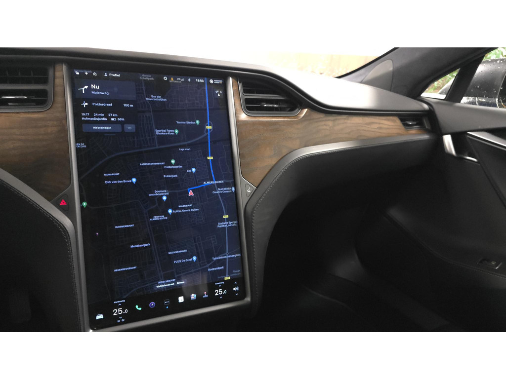 Zoals u mag verwachten van deze Tesla Model S is hij uitgerust met een reeks aan actieve veiligheidssystemen. De actuele snelheidslimiet, een inhaalverbod en andere verkeersborden. De verkeersborddetectie ondersteunt u tijdens elke rit. Ongemerkt buiten de rijstrook raken? Nee hoor, het Lane-keeping systeem waarschuwt en corrigeert. Met voorzieningen als dodehoekdetectie, autonoom remsysteem en bandenspanningcontrolesysteem, bent u altijd veilig onderweg.
