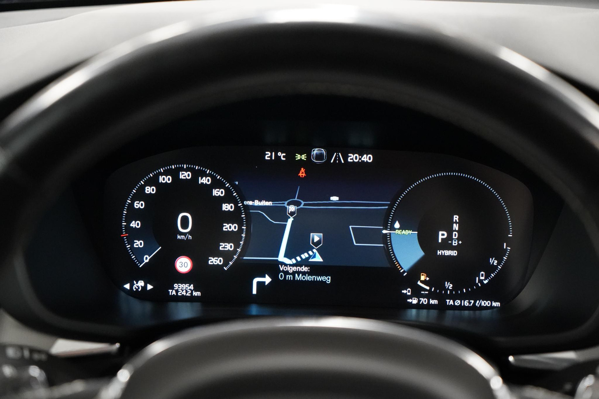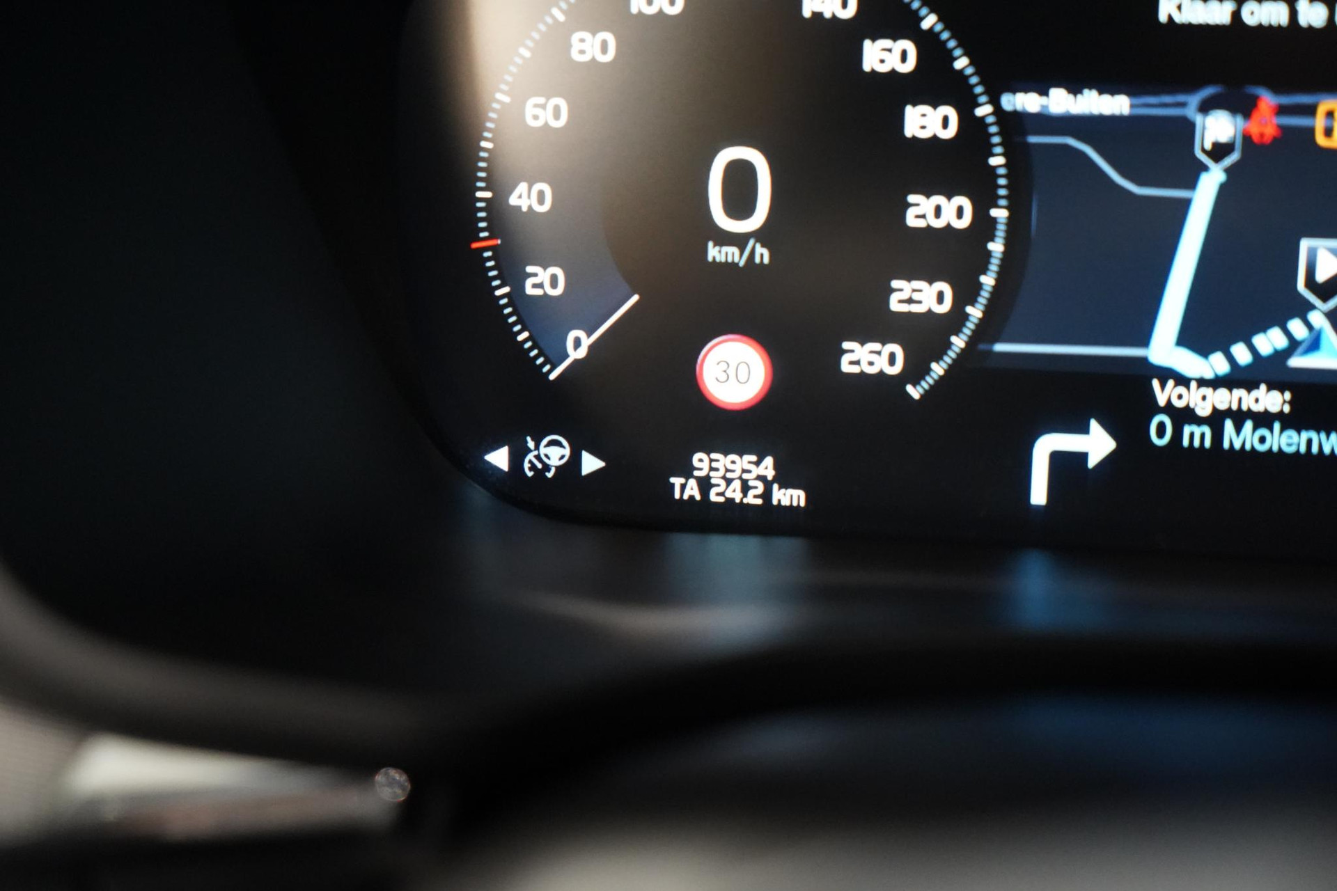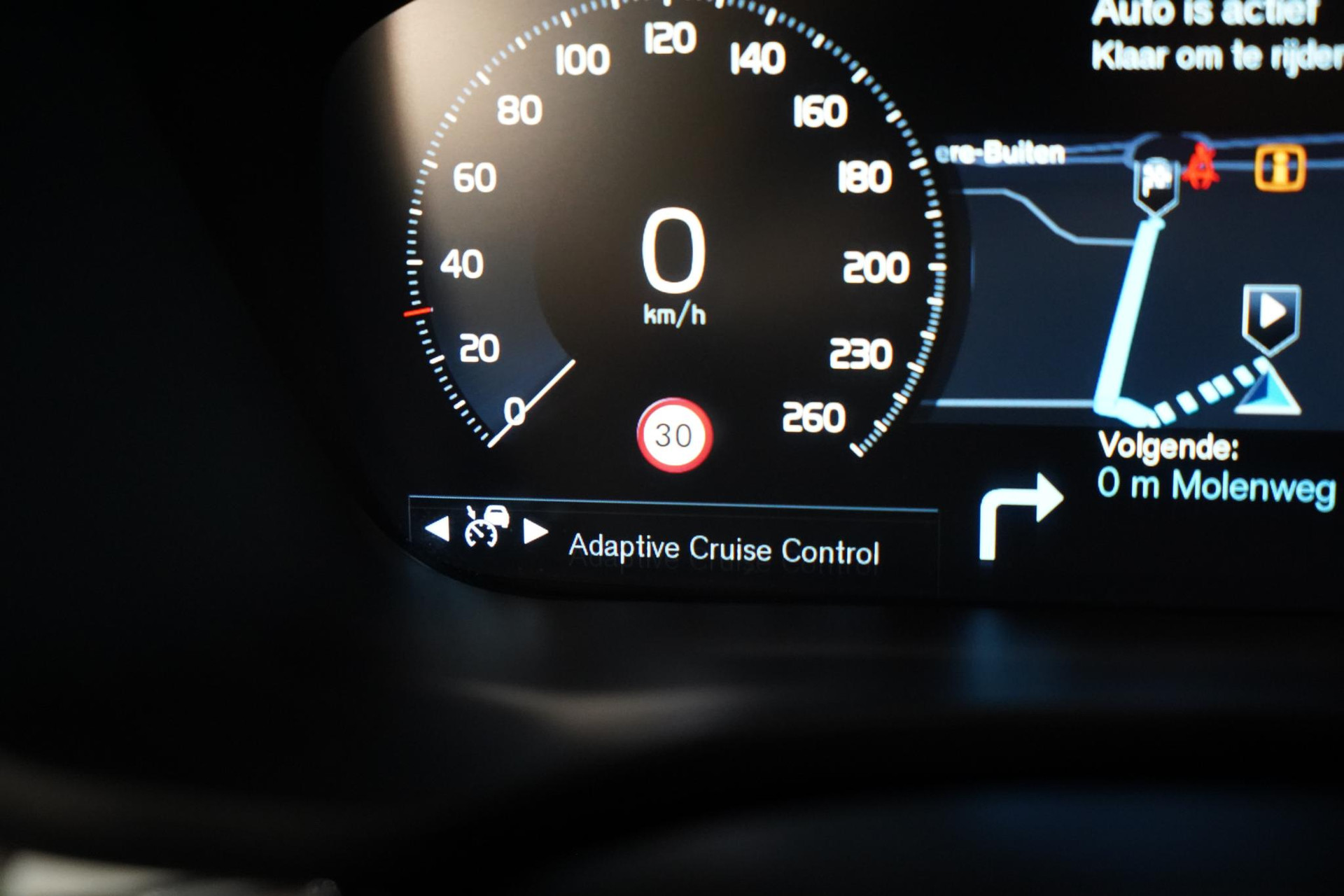 Het digitale dashboard in deze auto maakt personalisatie van uw cockpitinterface mogelijk. Strak inparkeren wordt een fluitje van een cent door de achteruitrijcamera. Adaptive cruise control is een comfortabele en veilige optie. Het systeem reguleert de snelheid en houdt automatisch afstand tot uw voorligger. Spraaksturing is onderdeel van de uitrusting van deze auto. Met uw stem kunt u de belangrijkste voertuigfuncties bedienen. Vergeten af te sluiten? Bandenspanning onvoldoende? De speciale app geeft u direct een seintje met behulp van Connected Services. Deze Volvo is voorzien van premium audiosysteem, navigatiesysteem met harde schijf, achteropkomend verkeer waarschuwing, R-design, kruisend verkeer detectie en electronic climate control.