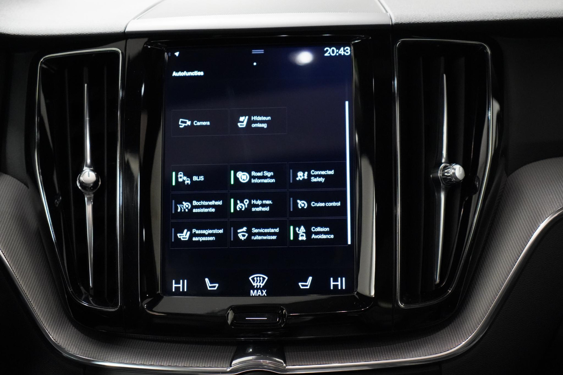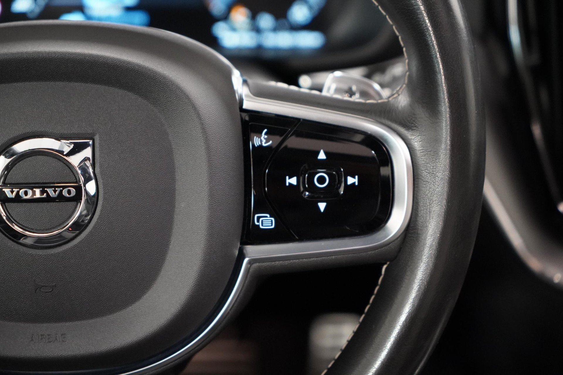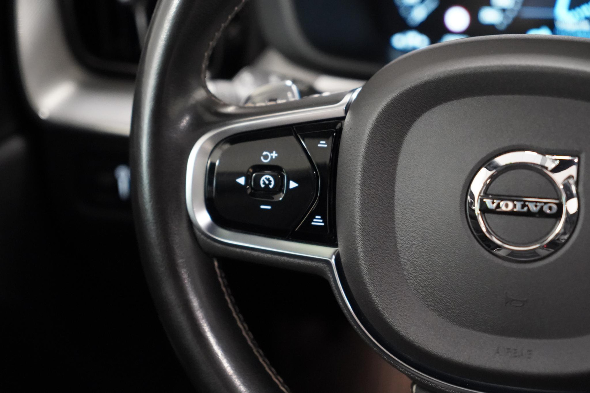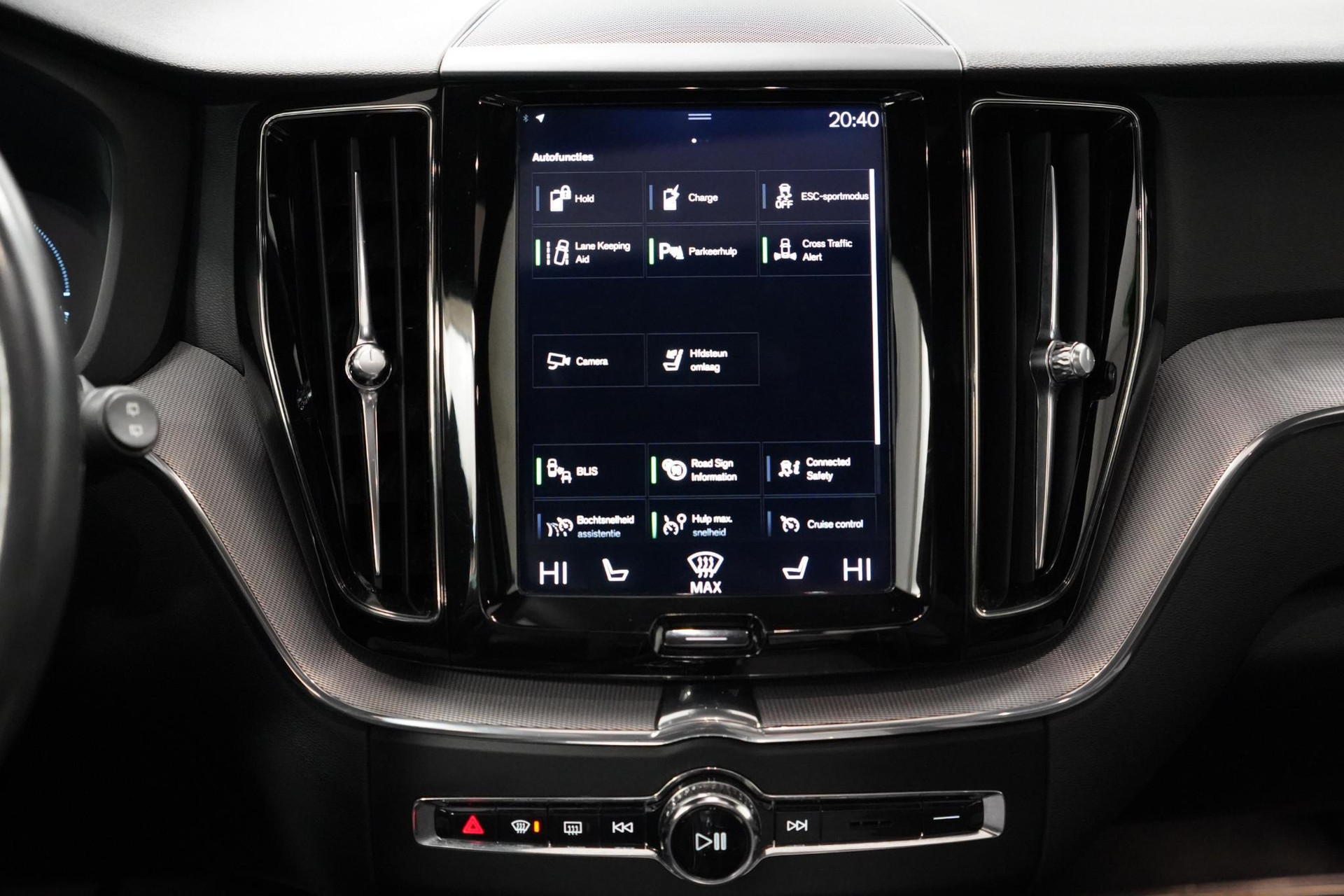 Het digitale dashboard in deze auto maakt personalisatie van uw cockpitinterface mogelijk. Strak inparkeren wordt een fluitje van een cent door de achteruitrijcamera. Adaptive cruise control is een comfortabele en veilige optie. Het systeem reguleert de snelheid en houdt automatisch afstand tot uw voorligger. Spraaksturing is onderdeel van de uitrusting van deze auto. Met uw stem kunt u de belangrijkste voertuigfuncties bedienen. Vergeten af te sluiten? Bandenspanning onvoldoende? De speciale app geeft u direct een seintje met behulp van Connected Services. Deze Volvo is voorzien van premium audiosysteem, navigatiesysteem met harde schijf, achteropkomend verkeer waarschuwing, R-design, kruisend verkeer detectie en electronic climate control.