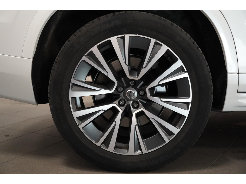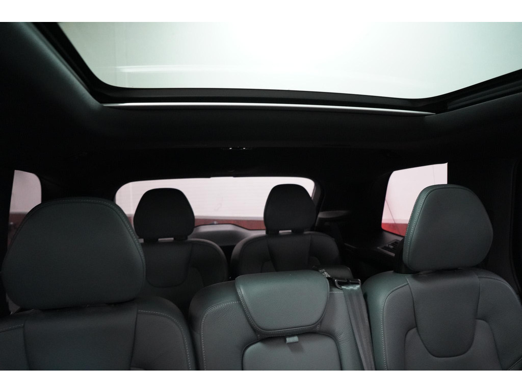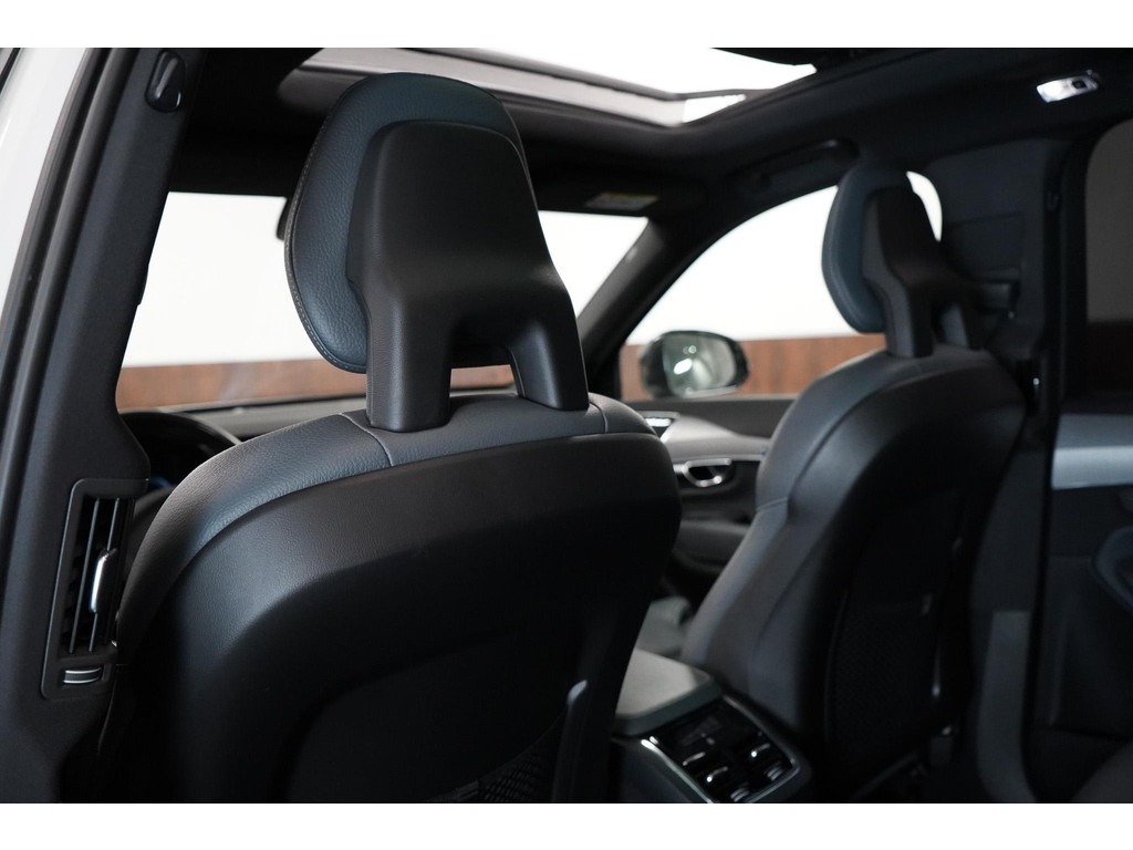 De Volvo XC90 staat bekend als het vlaggenschip van het merk, en deze uitvoering laat zien waarom. Het exterieur straalt pure klasse uit. De imposante 22 inch lichtmetalen velgen, de stijlvolle LED-koplampen met karakteristieke "Thor’s Hammer"-signatuur en de krachtige lijnen van de carrosserie benadrukken de robuuste maar verfijnde uitstraling. Het extra getinte glas geeft niet alleen privacy, maar versterkt ook de exclusieve look. Boven uw hoofd strekt zich een groot elektrisch bedienbaar panoramadak uit, dat het interieur een lichte en ruimtelijke sfeer geeft.
