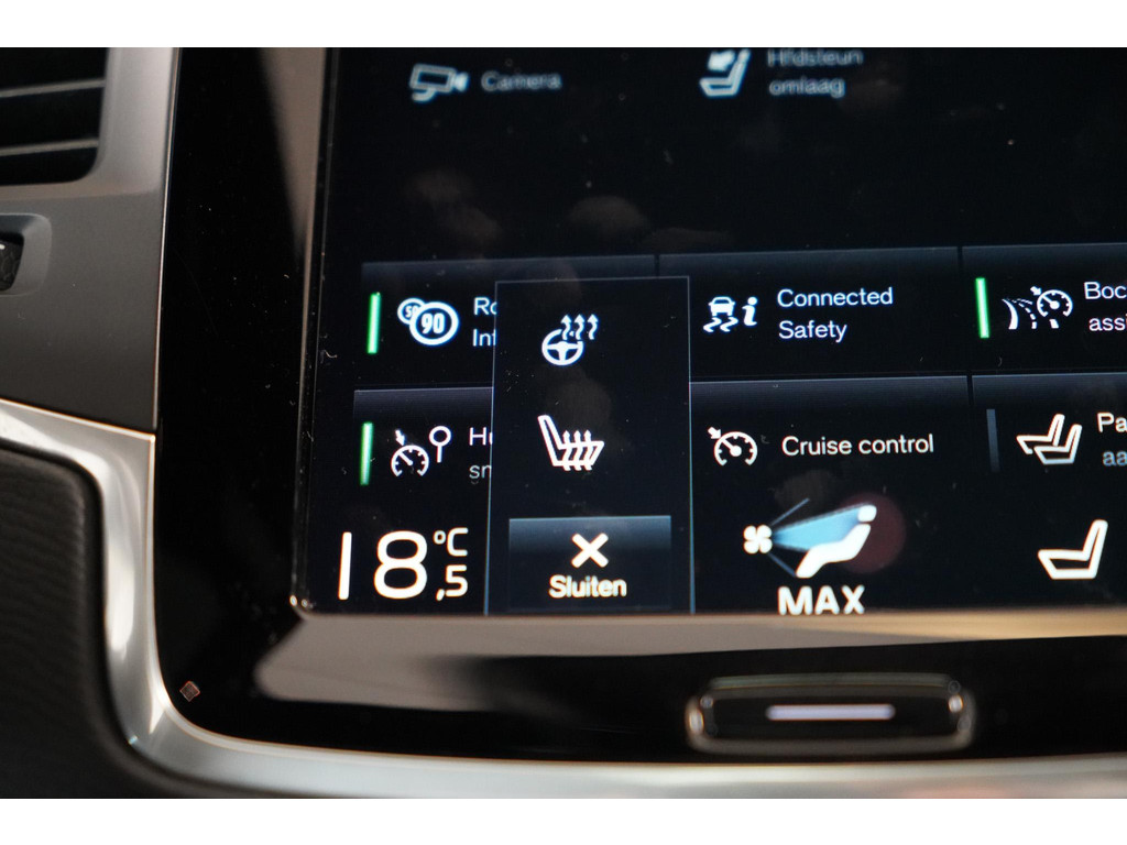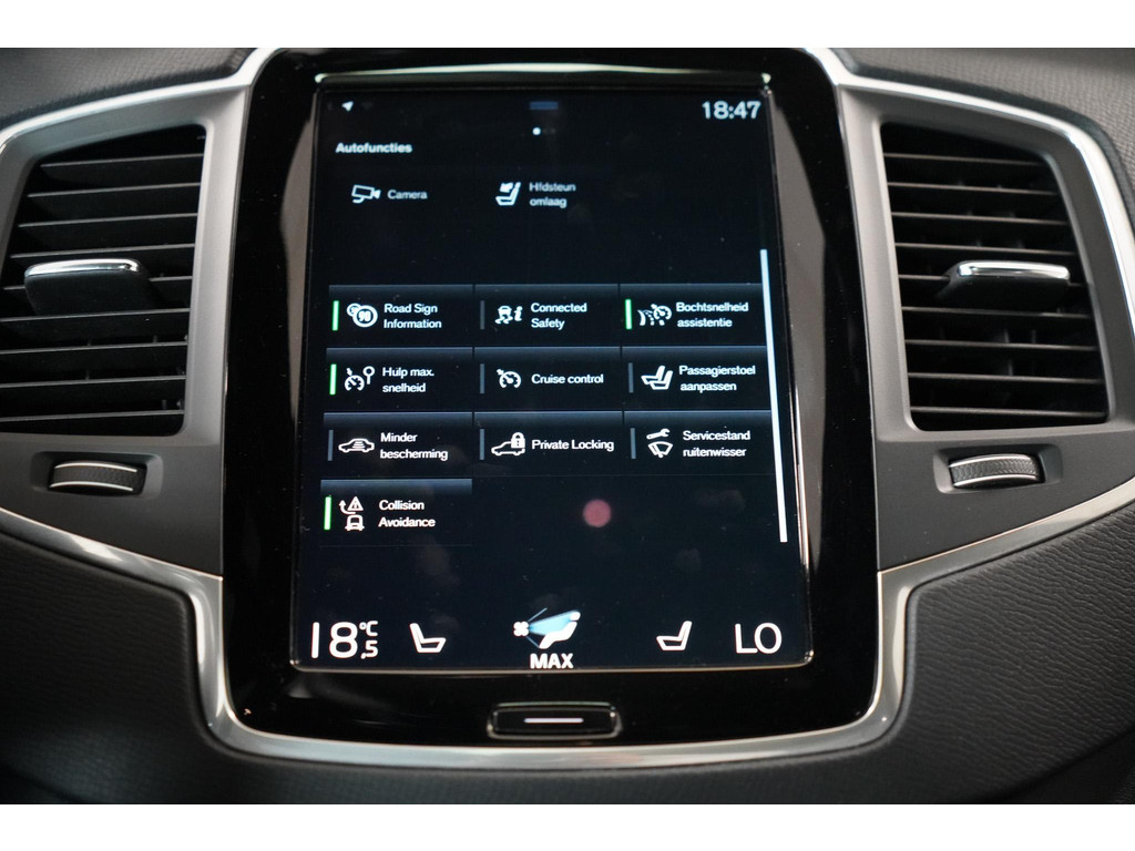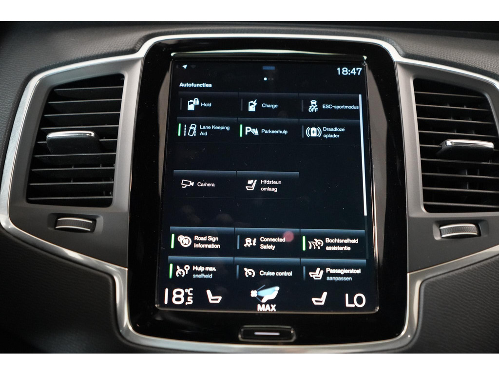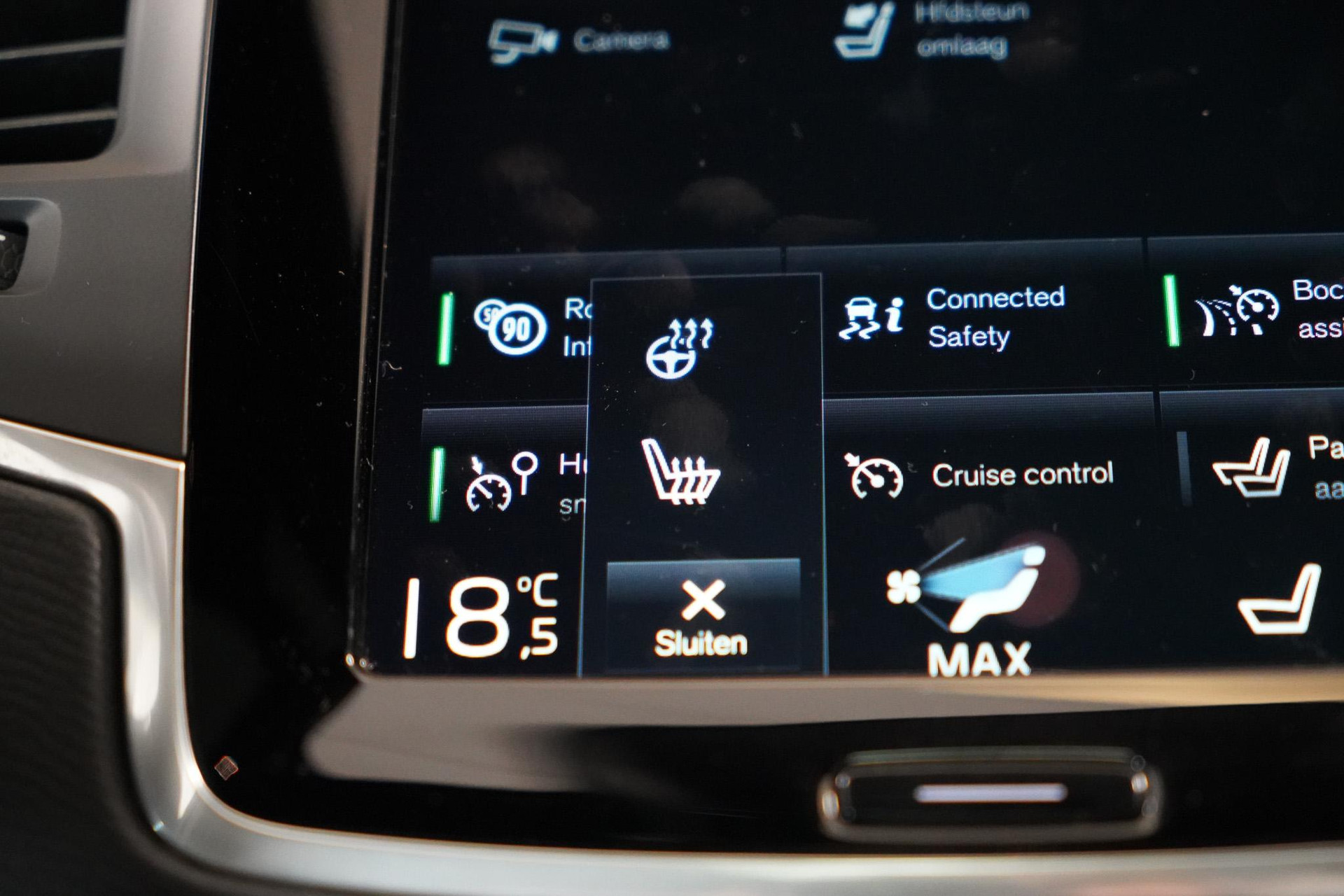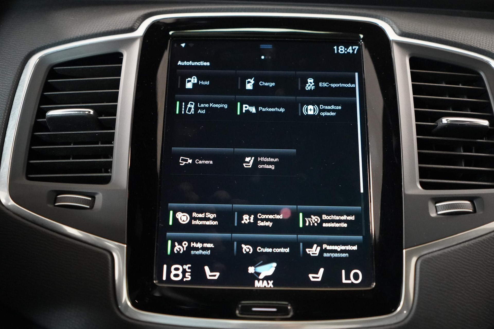 Veiligheid is waar Volvo groot mee is geworden, en deze XC90 is daarop geen uitzondering. Met systemen zoals adaptive cruise control, lane keeping assist, actieve dodehoekdetectie, forward collision warning, verkeersbordherkenning en kruisend verkeer detectie helpt de auto actief mee om u en uw passagiers te beschermen. De vermoeidheidsherkenning, hill hold functie en bandenspanningcontrolesysteem dragen verder bij aan een ontspannen en veilige rijervaring. Bij het achteruitrijden ondersteunt de achteruitrijcamera u met een perfect zicht op alles wat zich achter de auto bevindt.