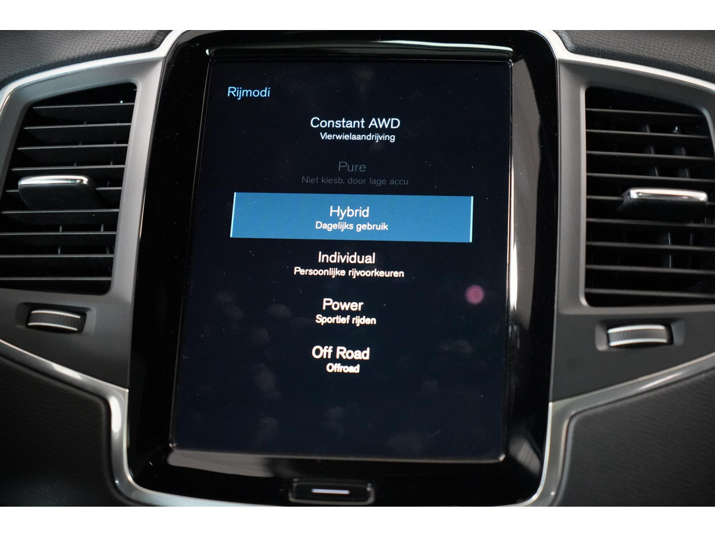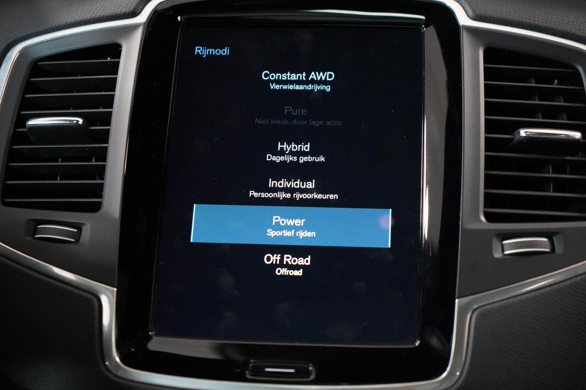 Rijden met de Volvo XC90 T8 is bovendien een bijzondere ervaring dankzij de plug-in hybride aandrijving. U kiest zelf of u volledig elektrisch rijdt – ideaal voor korte ritten en stadsverkeer – of de krachtige benzinemotor combineert voor lange afstanden en extra vermogen. Samen leveren ze een soepele en stille rijervaring met indrukwekkende prestaties. Het schakelen tussen elektrisch en hybride gaat volledig automatisch en bijna onmerkbaar.