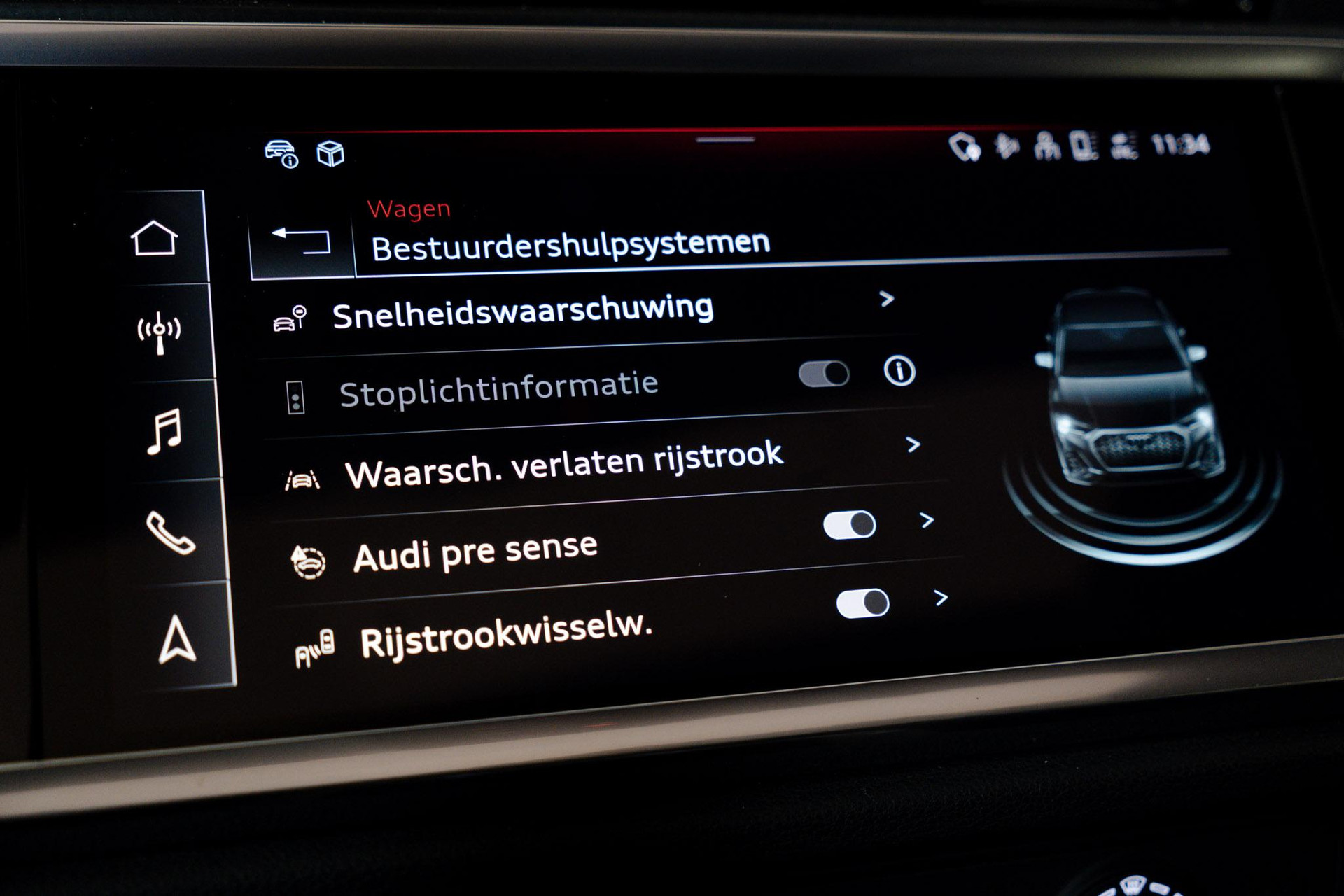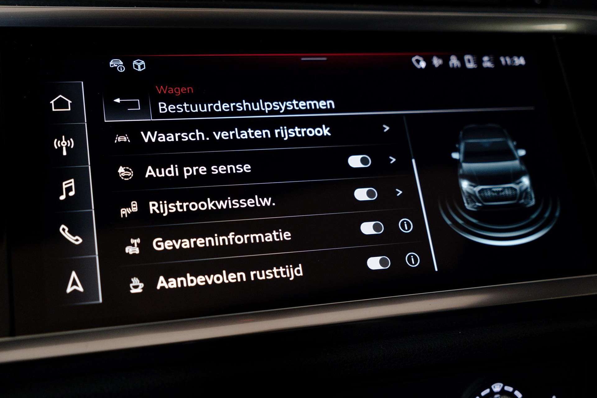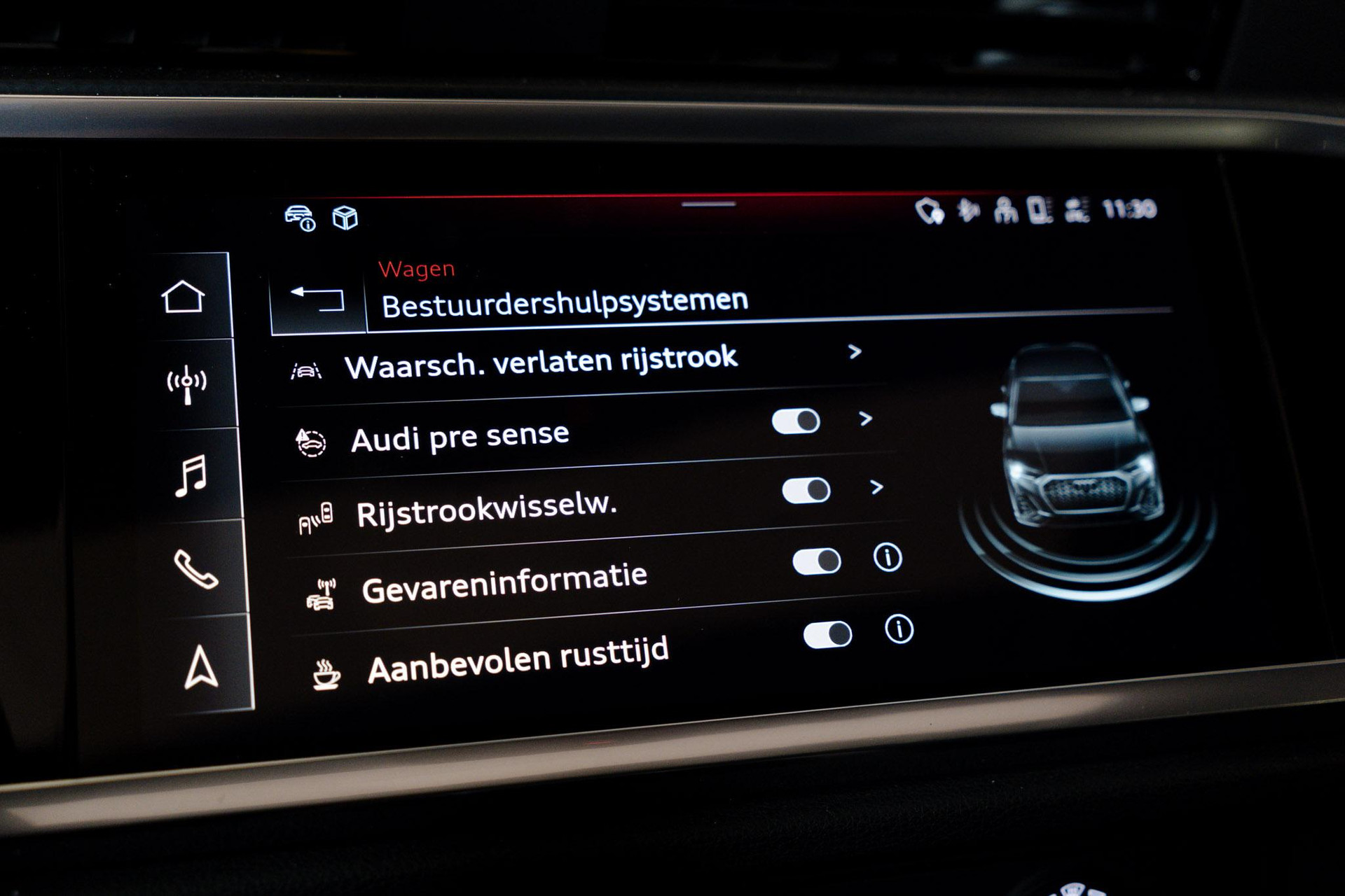 Met de nieuwste technologieën aan boord is deze Audi in staat om zelf te reageren op potentieel gevaarlijke situaties op de weg. De actuele snelheidslimiet, een inhaalverbod en andere verkeersborden. De verkeersborddetectie ondersteunt u tijdens elke rit. Voorzien van het Lane-keeping systeem. Ofwel: blijf automatisch in je baan. Veel aanrijdingen bestaan uit kop-staartbotsingen. De forward collision warning reduceert dat risico aanzienlijk. De veiligheid van deze auto wordt verder verhoogd door dodehoekdetectie, hill hold functie, frontale botsbescherming en bandenspanningcontrolesysteem.
