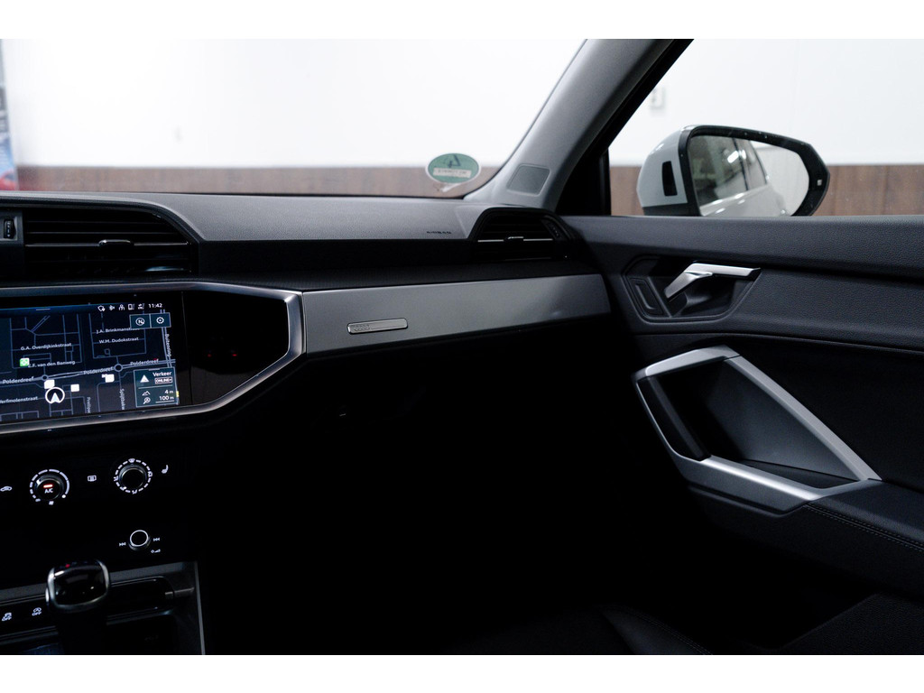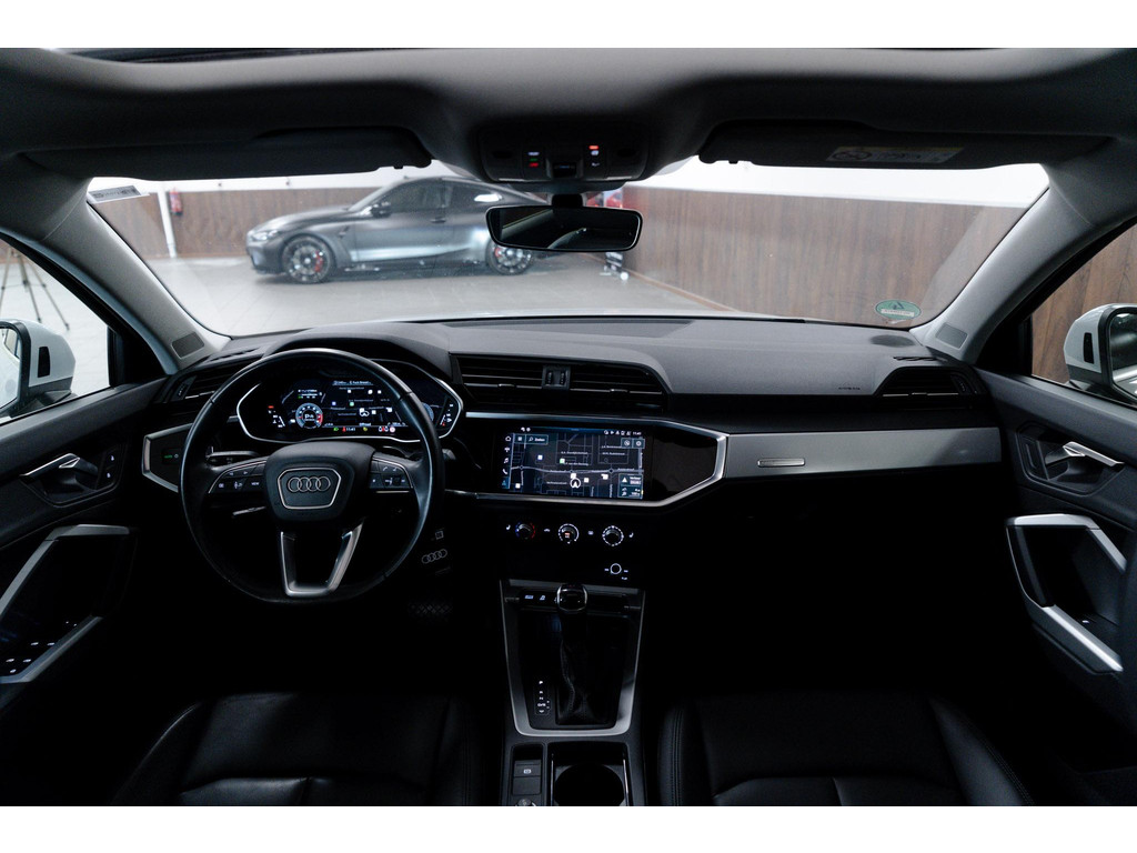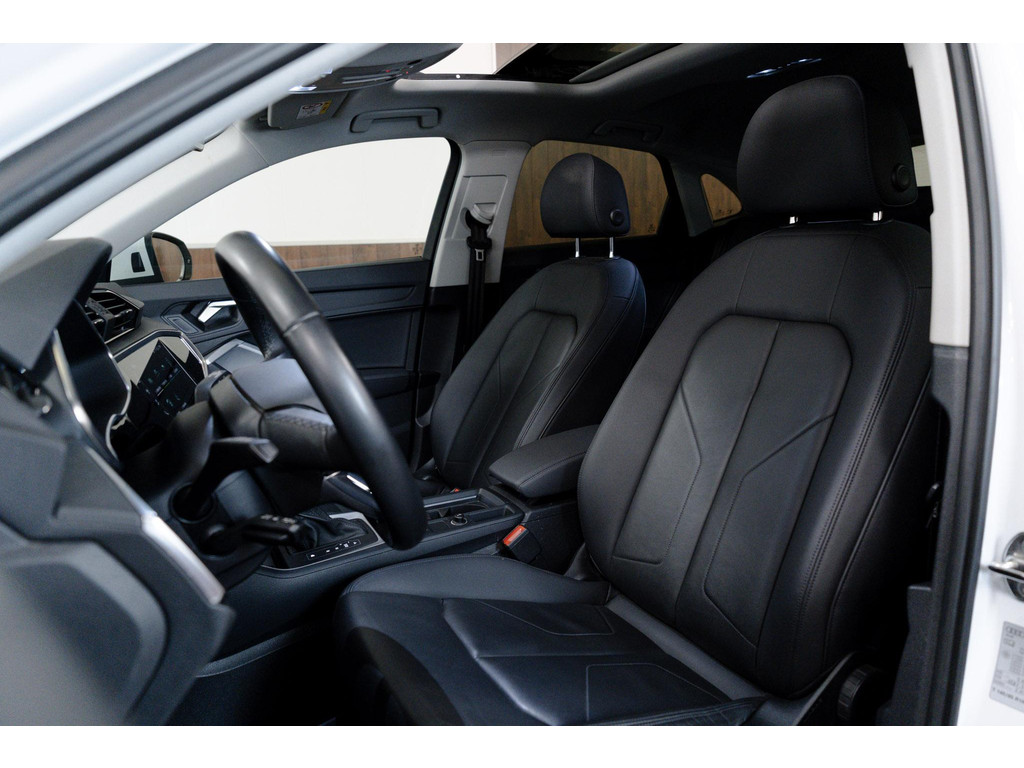 U gelooft het misschien moeilijk, maar deze Audi Q3 Sportback is niet nieuw. Nèt niet. De eerste eigenaar heeft 'm eventjes voor u ingereden en de nieuwprijs voor zijn rekening genomen. Nu is-ie voor u. De liefhebbers hebben het al gezien: de sportieve, stoere S-Line styling! Met zijn benzinemotor en automatische transmissie is dit een prima auto voor nog vele kilometers. Het lederen interieur geeft een puur luxegevoel. En ook aan optimaal gemak is gedacht: een elektrisch bediende glazen panorama dak en de elektrisch bedienbare achterklep. Is dat niet compleet? Laat de kou maar komen! U zit altijd goed met de heerlijke stoelverwarming. In deze Audi profiteert u onder andere ook van: 20 inch lichtmetalen velgen, Full LED koplampen, sportonderstel, warmtewerend glas, in delen neerklapbare achterbank en LED-achterlichten.