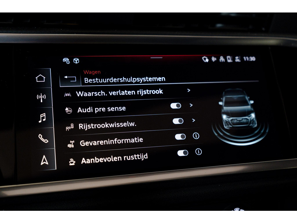 Met de nieuwste technologieën aan boord is deze Audi in staat om zelf te reageren op potentieel gevaarlijke situaties op de weg. De actuele snelheidslimiet, een inhaalverbod en andere verkeersborden. De verkeersborddetectie ondersteunt u tijdens elke rit. Voorzien van het Lane-keeping systeem. Ofwel: blijf automatisch in je baan. Veel aanrijdingen bestaan uit kop-staartbotsingen. De forward collision warning reduceert dat risico aanzienlijk. De veiligheid van deze auto wordt verder verhoogd door dodehoekdetectie, hill hold functie, frontale botsbescherming en bandenspanningcontrolesysteem.