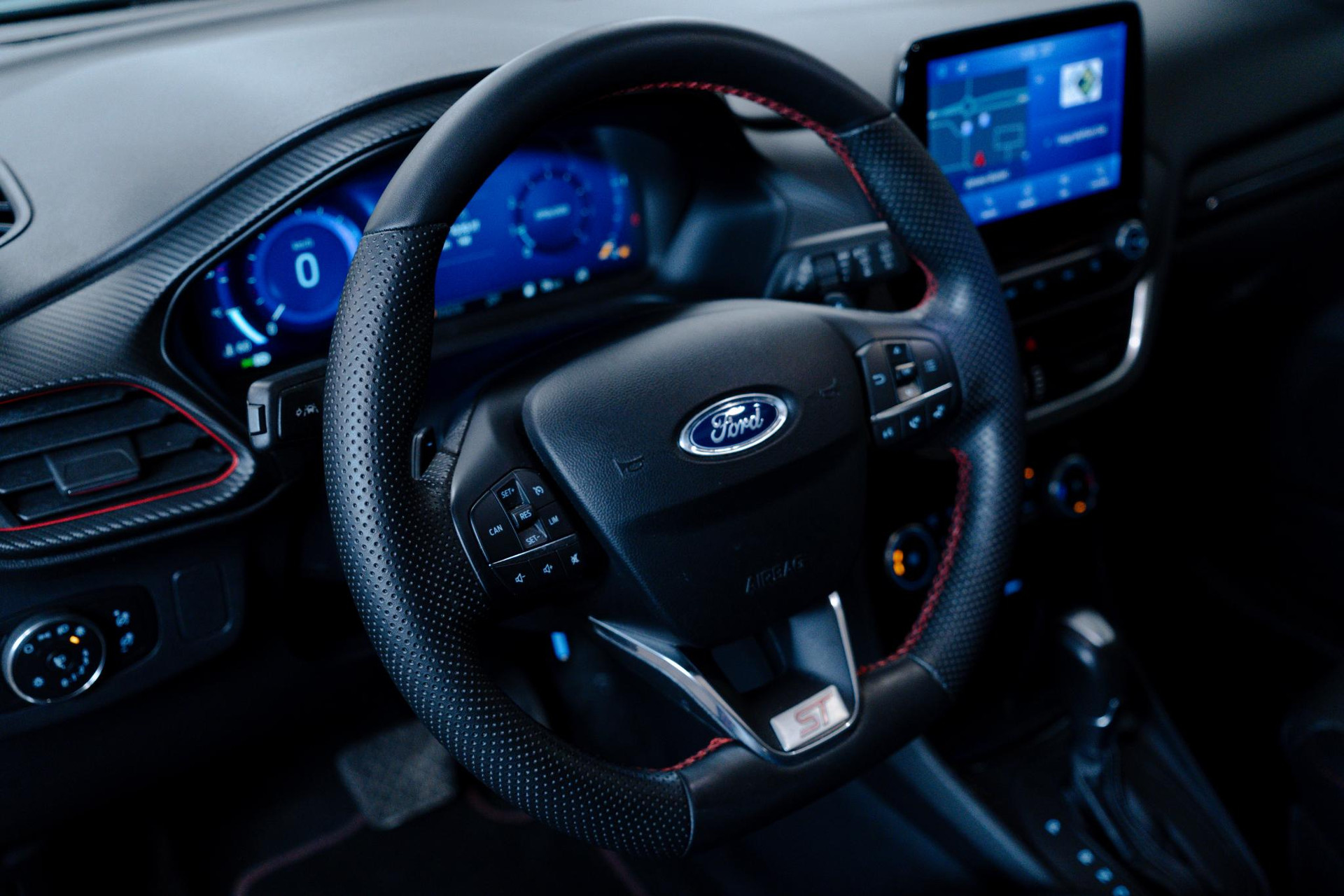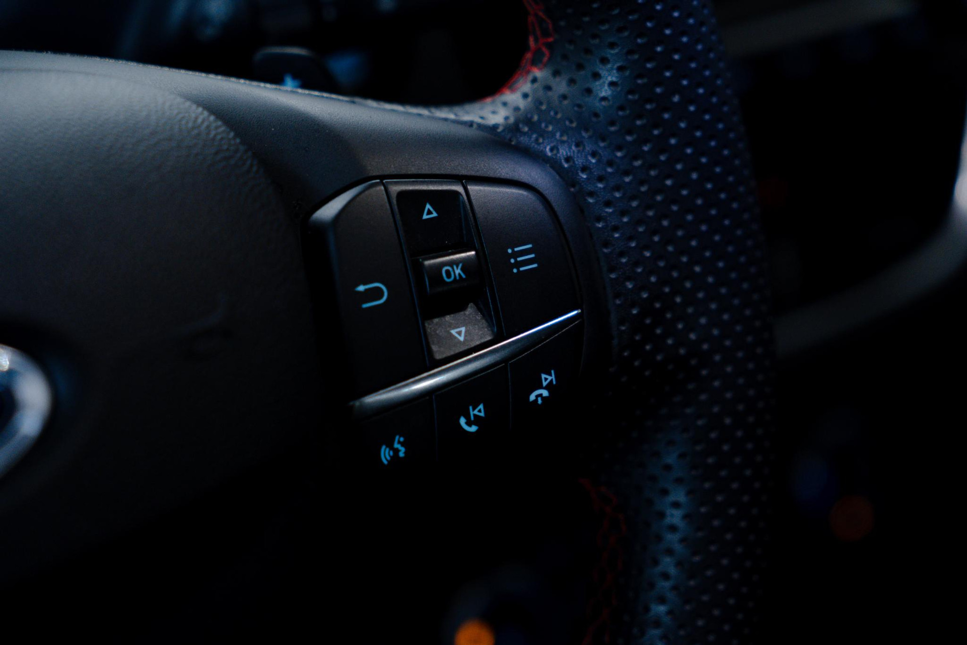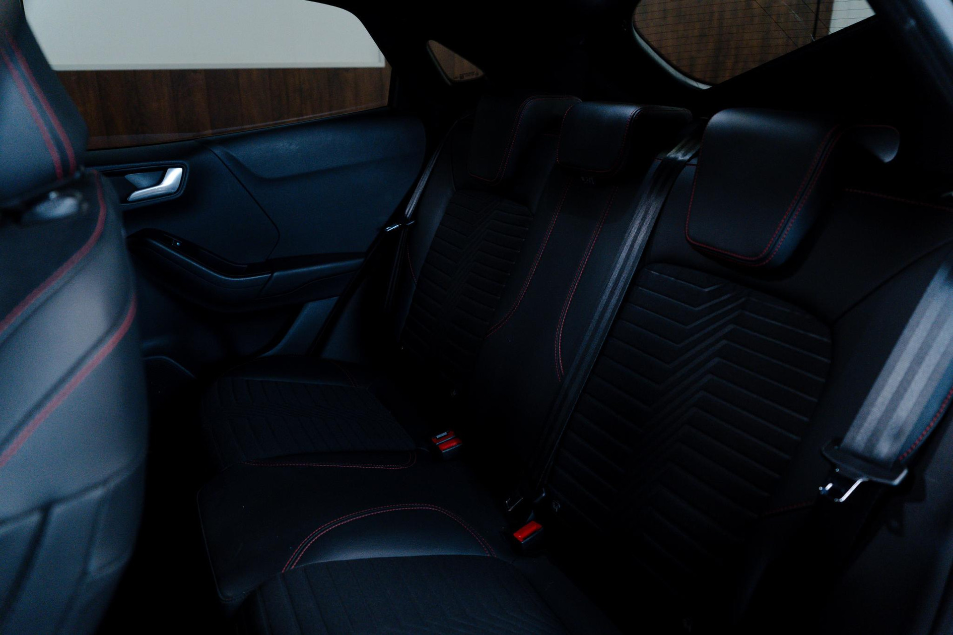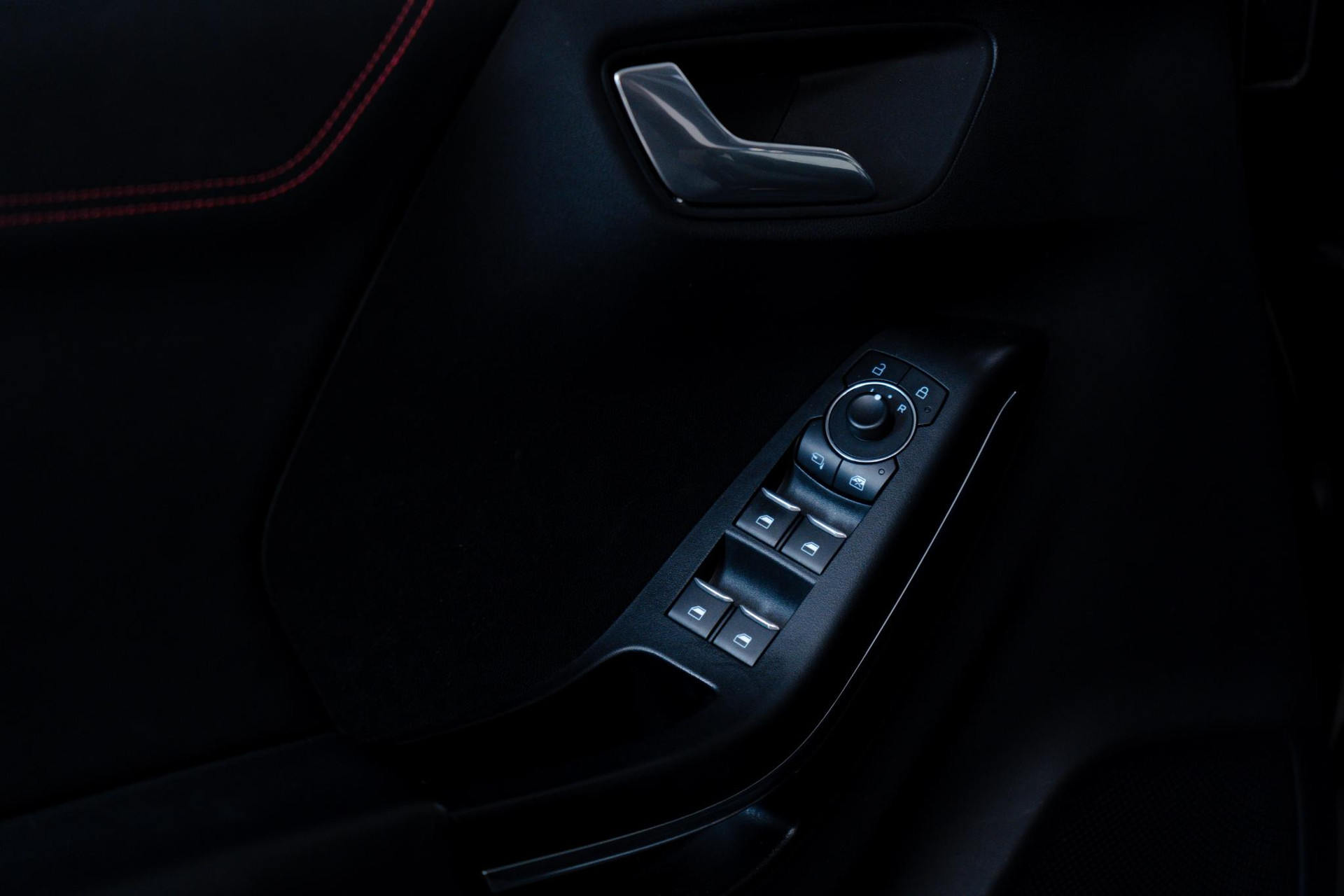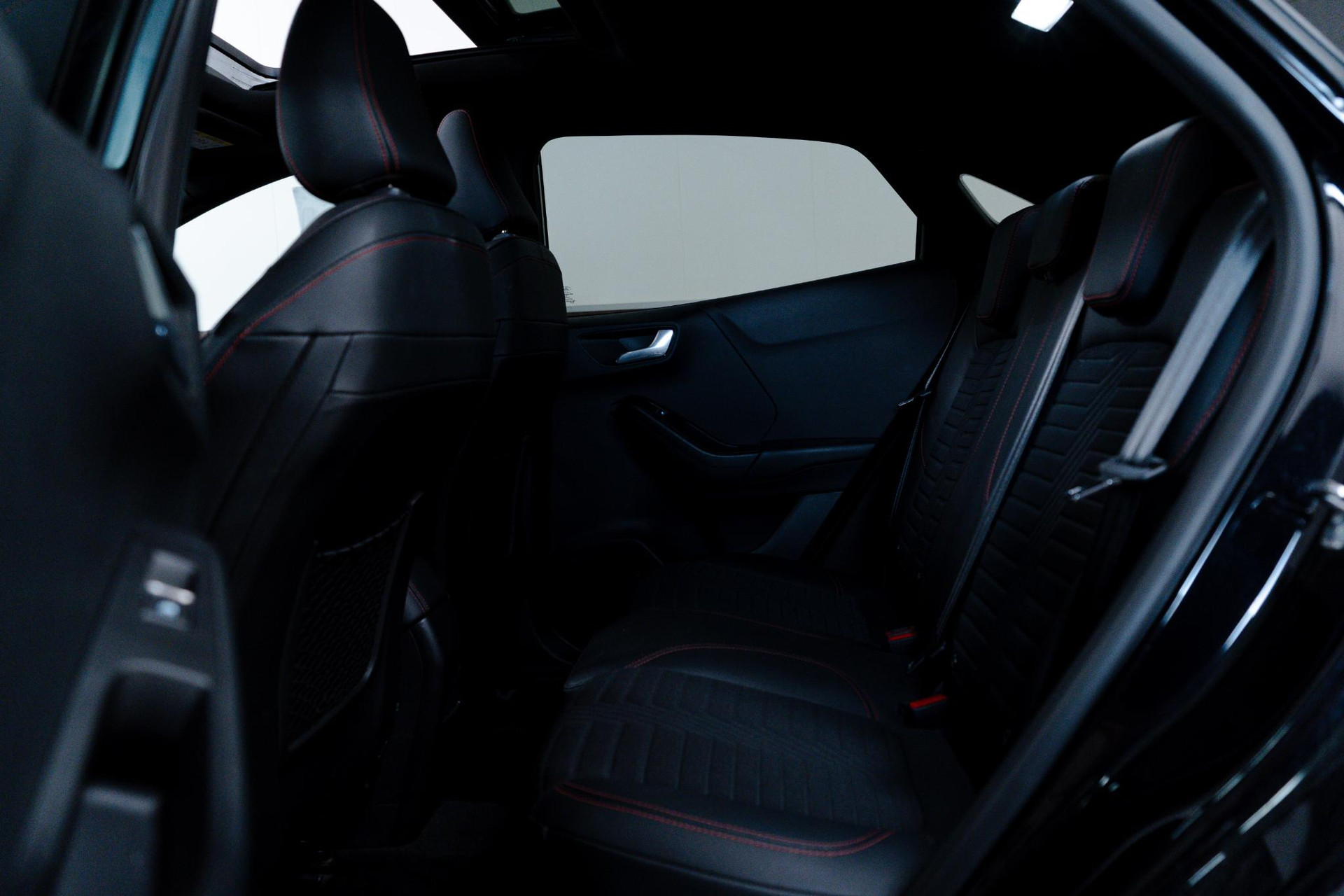 - Lederen stuurwiel met rode stiksels en schakelpeddels (elektrisch verwarmbaar)