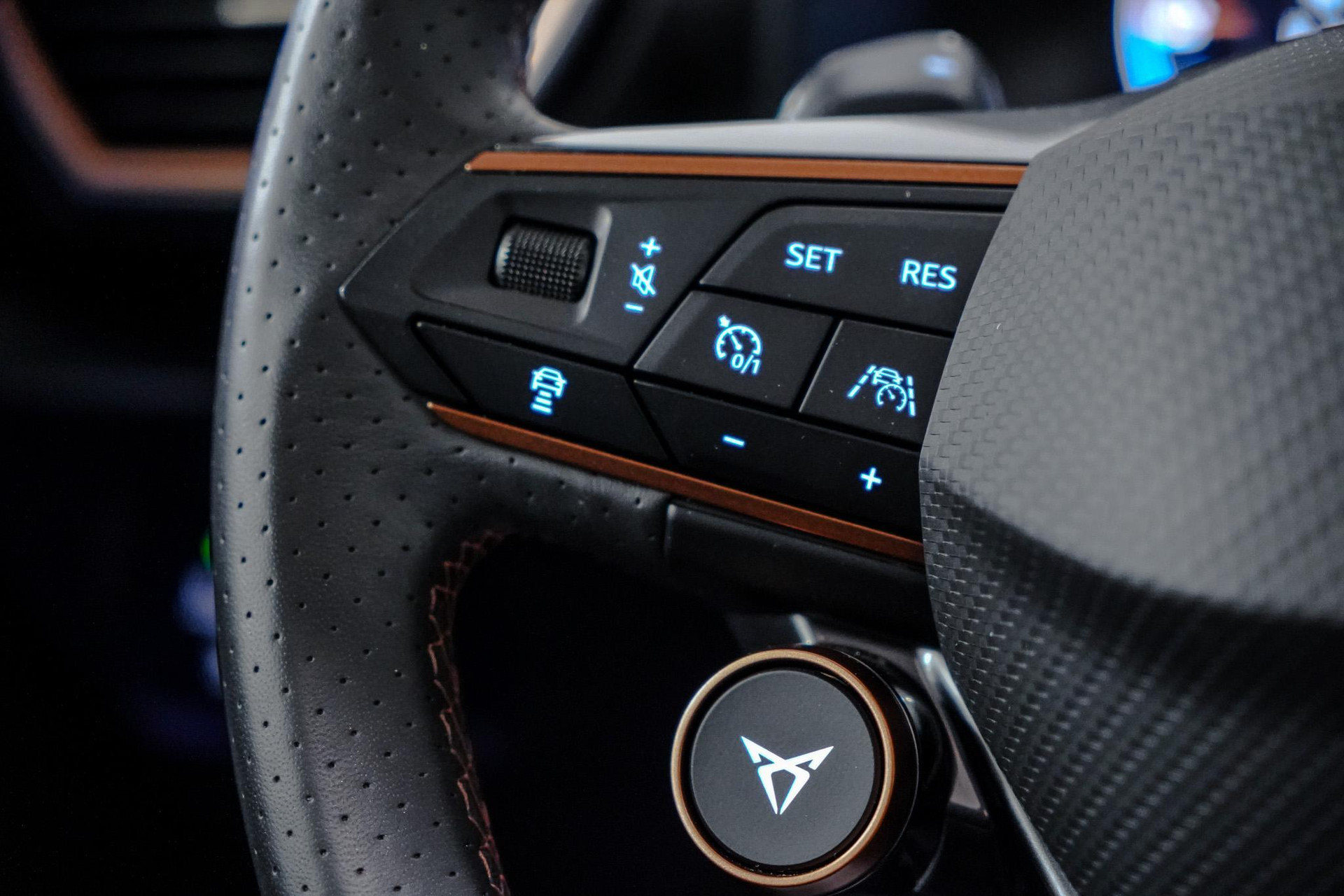 Slim, efficiënt, veilig en goed geïnformeerd rijden? Het digitale dashboard vertelt u alles wat u wilt weten. Met de achteruitrijcamera ziet u wat er achter de auto gebeurt. Zo rijdt u moeiteloos achteruit. Adaptive cruise control is veilig en comfortabel. De snelheidsregelaar houdt automatisch afstand tot het voertuig dat voor u rijdt. Rijden-stilstaan, rijden-stilstaan. Niks is irritanter en vermoeiender dan filerijden. Daar heeft deze CUPRA Formentor een oplossing voor: de file assistent, die met radarmeting permanent het tempo aanpast op de voorligger. Zelfs als die stopt. Uw smartphone is tegenwoordig de sleutel tot heel veel. Ook voor deze auto. Remote services, noemen we dat. Waar u ook bent, contact houden is een eitje. Met dashboard met spraakbediening, full map navigatiesysteem, electronic climate control, DAB ontvangst, regensensor en keyless entry is deze auto helemaal compleet.