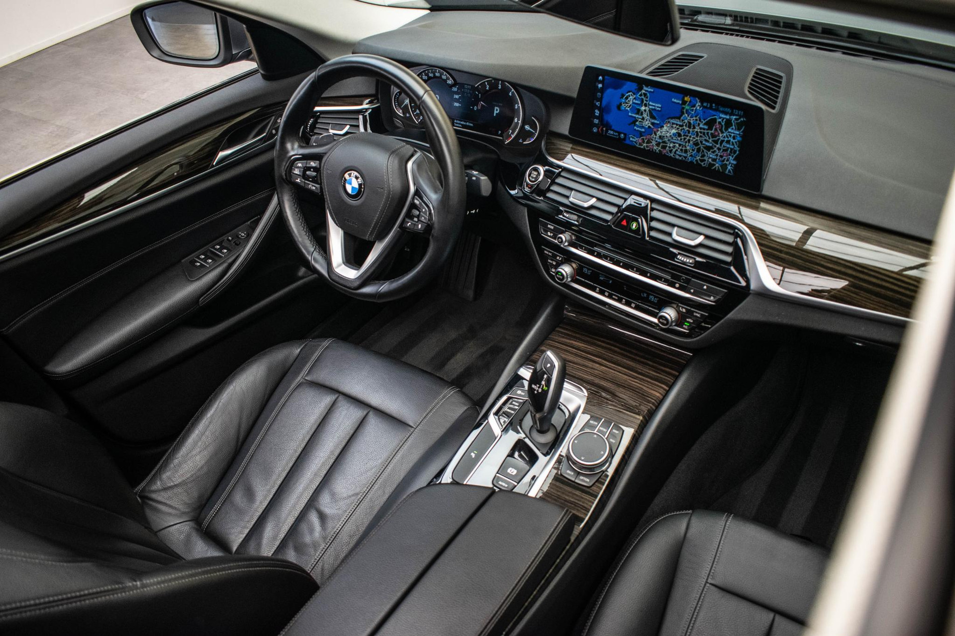 Zoals u mag verwachten van deze BMW 5-serie is hij uitgerust met een reeks aan actieve veiligheidssystemen. De actuele snelheidslimiet, een inhaalverbod en andere verkeersborden; de verkeersborddetectie ondersteunt u tijdens elke rit. Het Lane-keeping systeem zorgt dat u mooi binnen de lijntjes blijft. Ongemerkt buiten de rijstrook komen is er niet meer bij. Forward collision warning helpt u om kop-staart aanrijdingen te voorkomen. Bovenop deze veiligheidsfeatures heeft deze BMW bovendien dodehoekdetectie, hill hold functie, brake assist en bandenspanningcontrolesysteem.