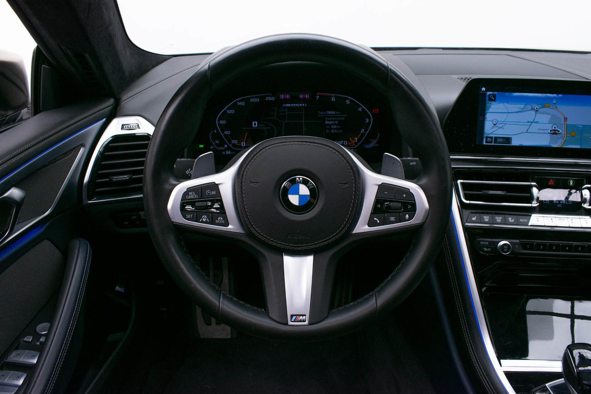 De BMW 8-serie Gran Coupé is ook voorzien van ADAS. Deze Advanced Driver Assistence Systems fungeren als extra ogen en oren: ze houden voor u de weg in de gaten en grijpen in wanneer dat nodig is. Belangrijke ritfuncties permanent in uw zichtveld: dat is het voordeel van de head-up display. Bij de veiligheidssystemen van deze BMW hoort ook de verkeersbord-detectie. Die leest tijdens het rijden als het ware met u mee en attendeert u op de significante verkeersborden langs en boven de weg. Het Lane-keeping systeem let constant op en waarschuwt of corrigeert als u onoplettend over de lijnen van de rijstrook gaat. De auto is ook uitgerust met dodehoekdetector detectiesysteem, forward collision warning system, hill hold functie, frontale botsbescherming en bandenspanningcontrolesysteem.