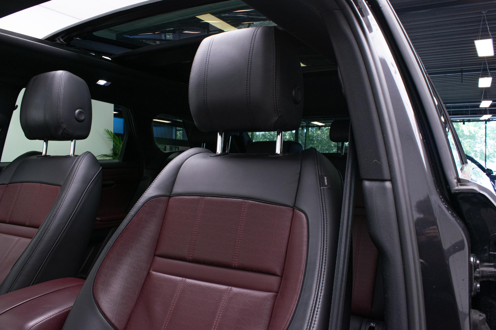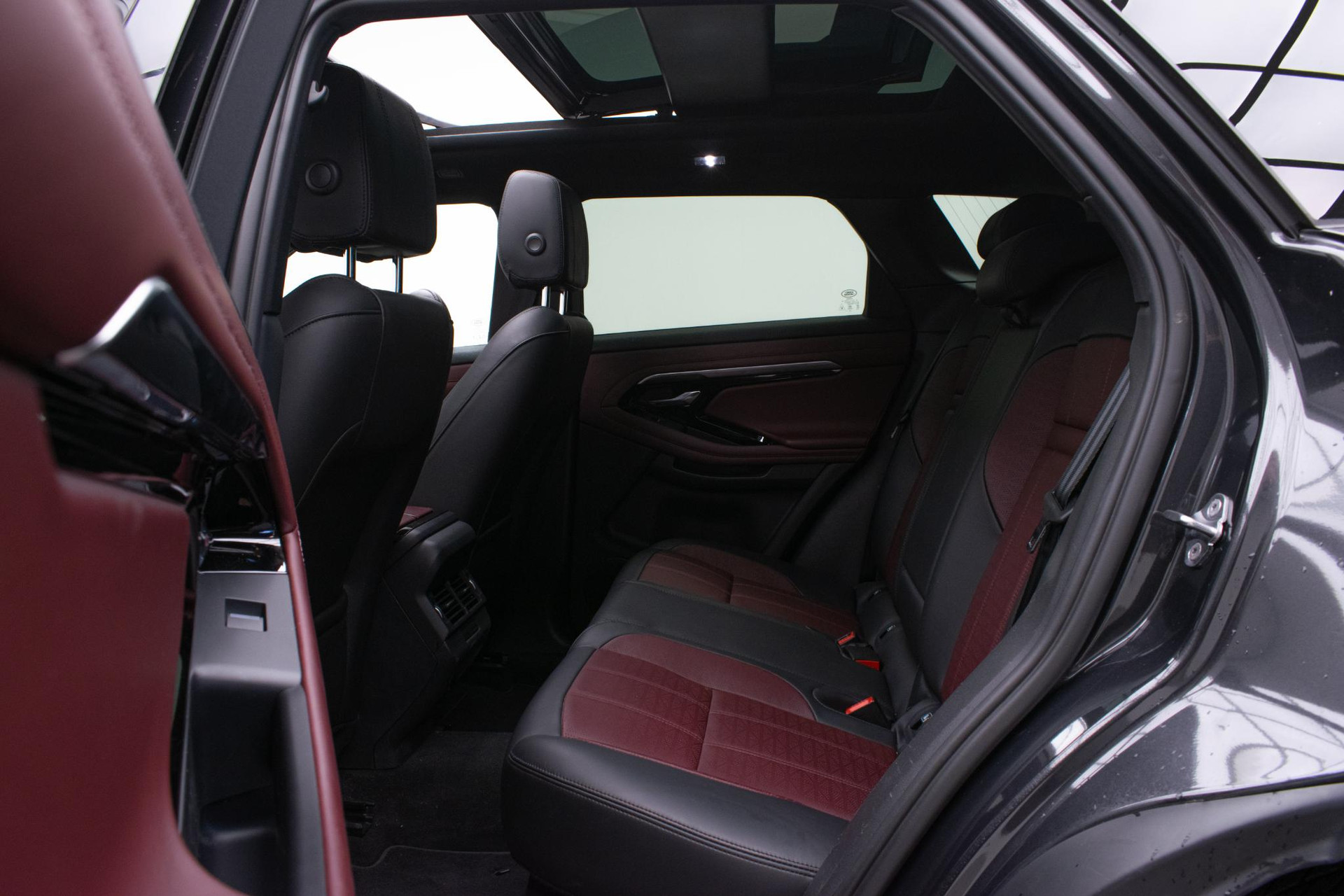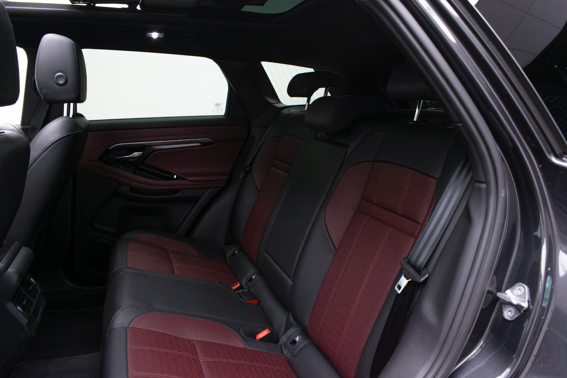 - Stoelbekleding in geperforeerd Windsor leder in Deep Garnet/Ebony, met Deep Garnet/Ebony interieur