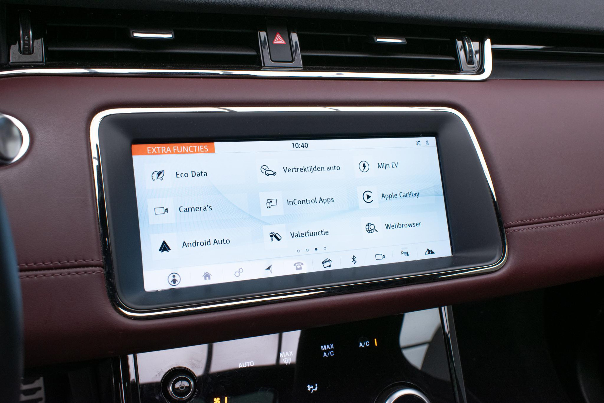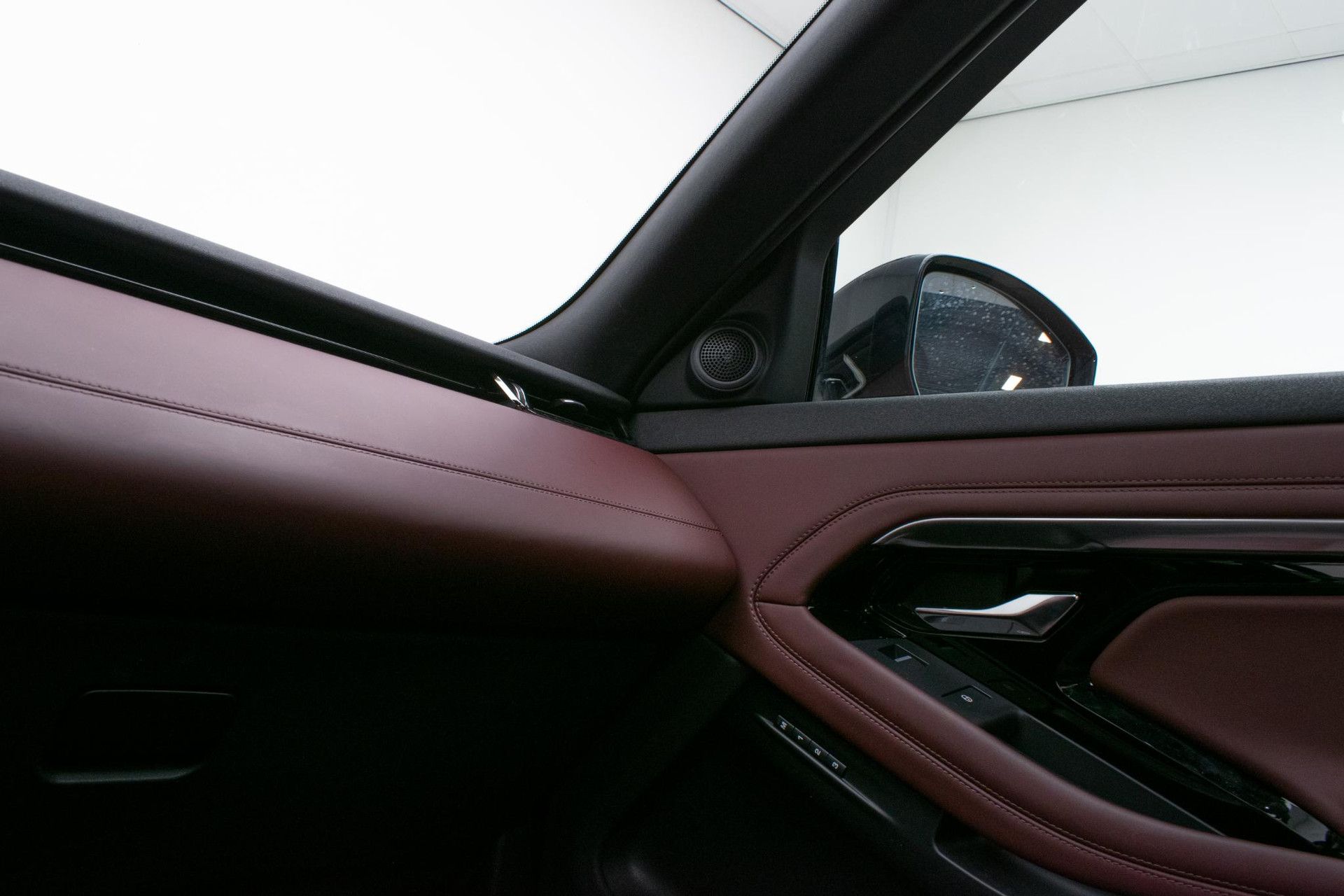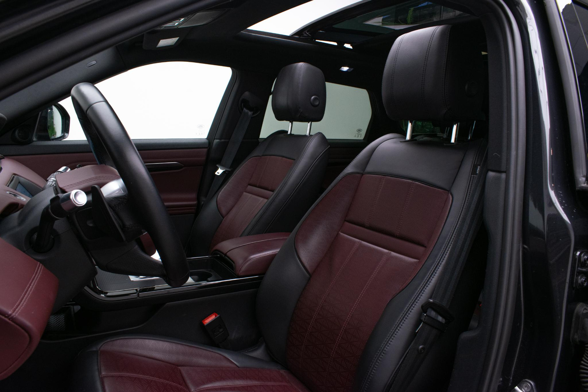 - Stoelbekleding in geperforeerd Windsor leder in Deep Garnet/Ebony, met Deep Garnet/Ebony interieur