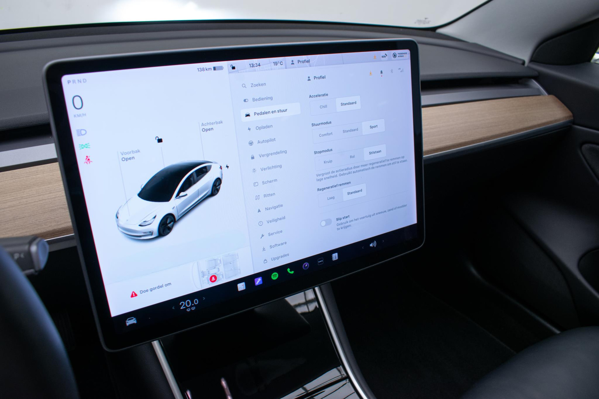 Zoals u mag verwachten van deze Tesla Model 3 is hij uitgerust met een reeks aan actieve veiligheidssystemen. Forward collision warning is een automatisch waarschuwingssysteem dat direct in werking treedt bij gevaar voor een kop-staartbotsing. Bovenop deze veiligheidsfeatures heeft deze Tesla bovendien dodehoekdetectie en autonoom remsysteem.