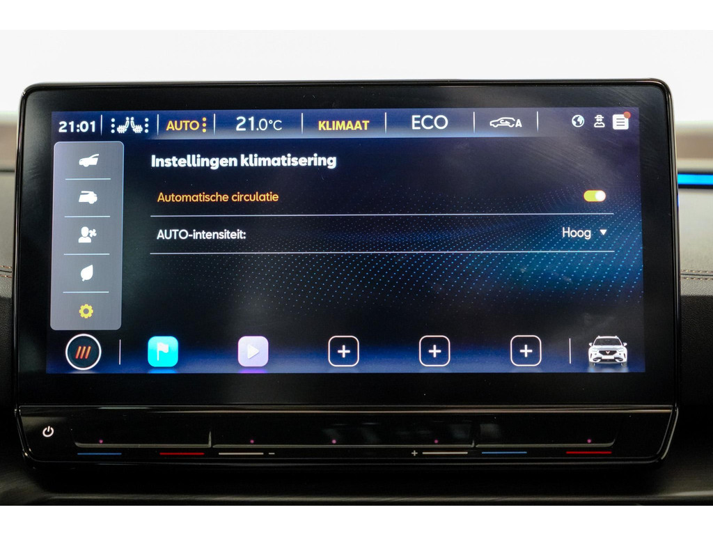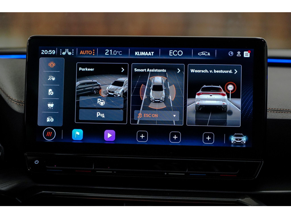 Dankzij het digitale dashboard in deze auto kan u de interface van uw cockpit personaliseren. Soepel inparkeren gaat gemakkelijker dan u verwacht dankzij de achteruitrijcamera. Adaptive cruise control is een comfortabele en veilige optie. Het systeem reguleert de snelheid en houdt automatisch afstand tot uw voorligger. De ingebouwde file assistent is een echte helper als het vaststaat onderweg. Het systeem meet ruimte tot de auto vóór u permanent en activeert zelfs de remmen als uw voorligger stopt. Connected Services voegt nog meer comfort en veiligheid toe aan deze auto. U bent in deze CUPRA ook voorzien van dashboard met spraakbediening, full map navigatiesysteem, electronic climate control, draadloos opladen, DAB ontvangst en regensensor.