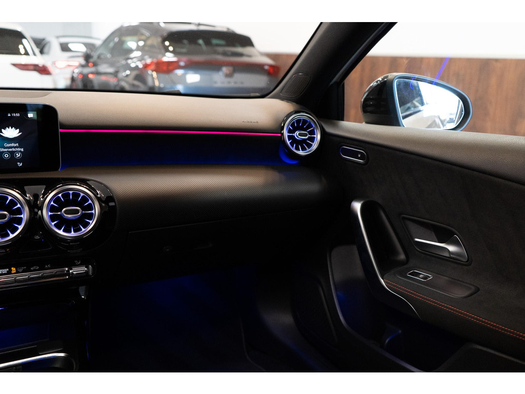 Binnenin word je verwelkomd door het geavanceerde MBUX systeem met groot digitaal display en navigatie inclusief Augmented Reality, wat zorgt voor een innovatieve rijervaring. De sfeervolle ambient lighting maakt het interieur compleet en geeft elke rit een premium gevoel.